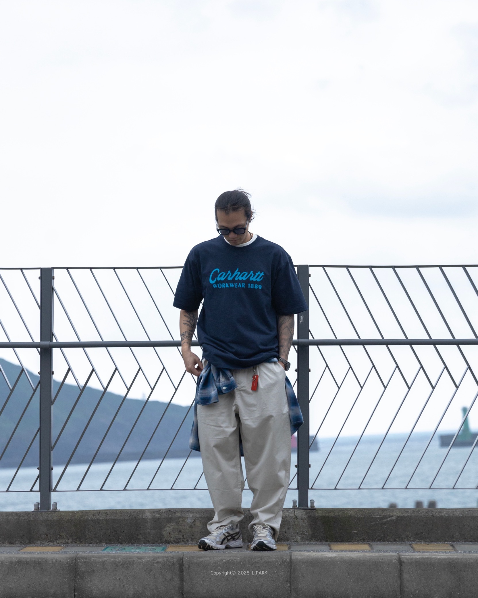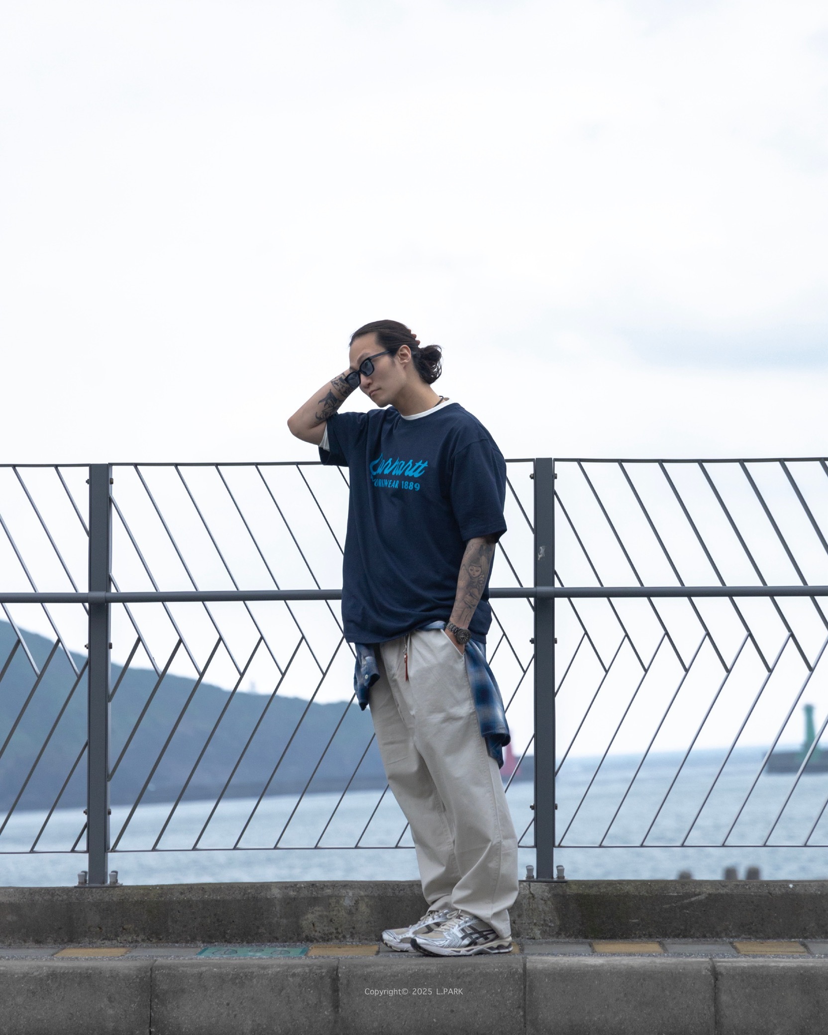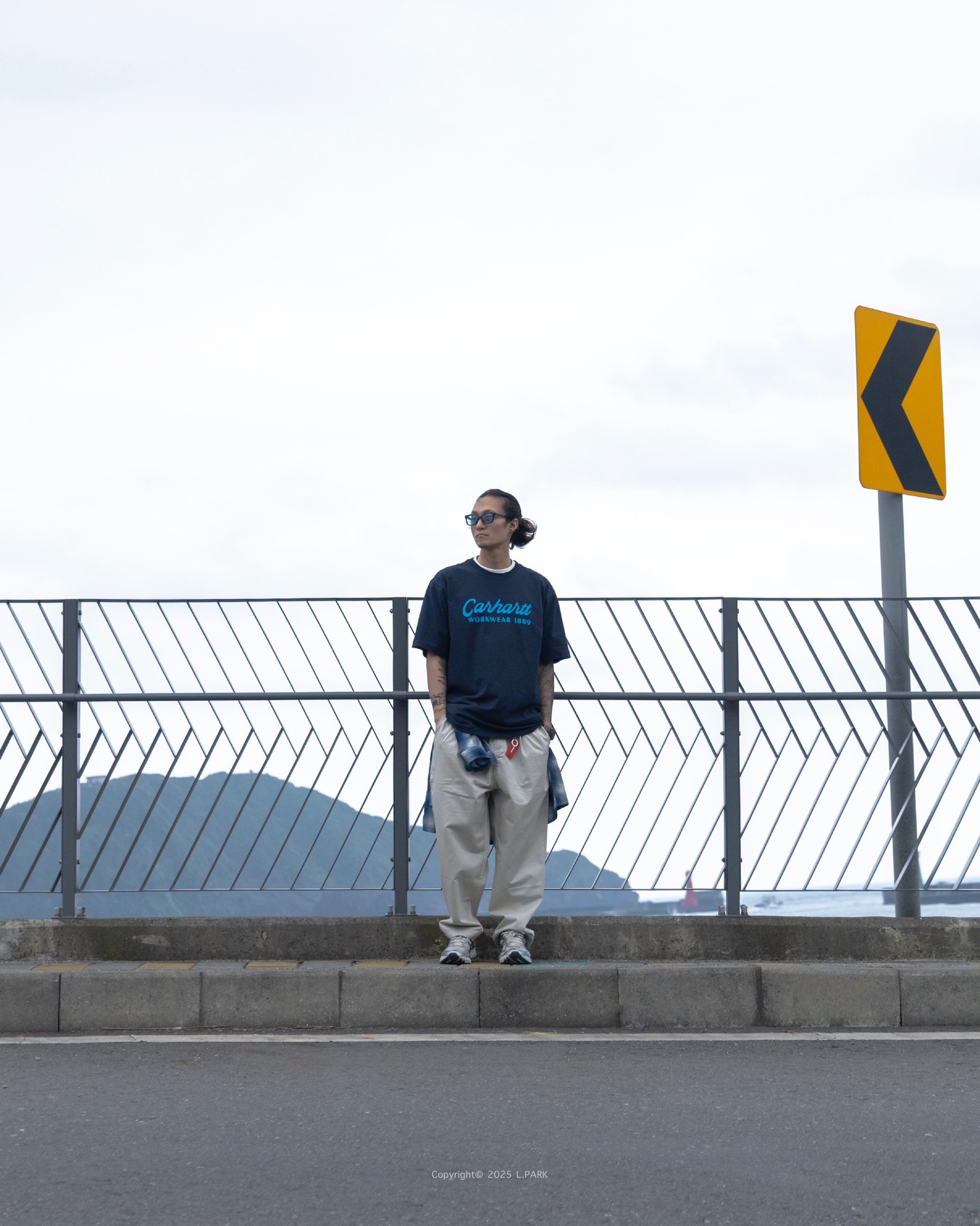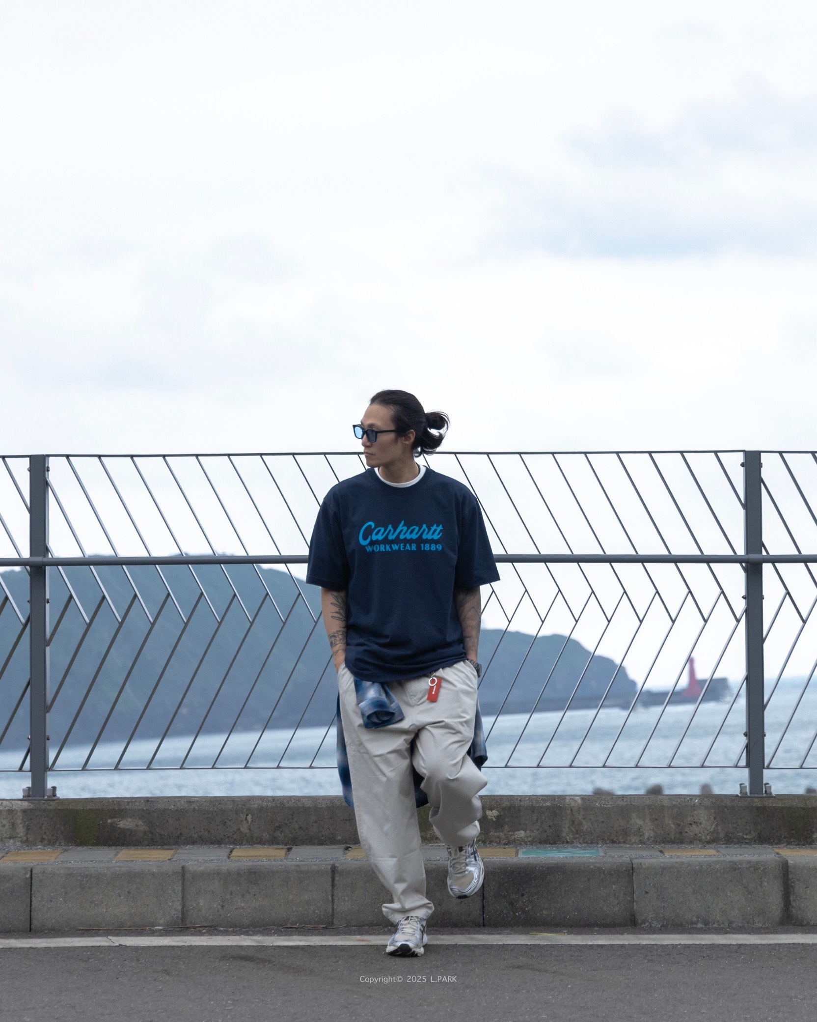 [ 100% cotton . 6.75 oz . Heavyweight . 美國棉 . 厚磅硬挺 . 草寫印花 . 咬標細節 . 美版寬鬆 . 短袖 ]
