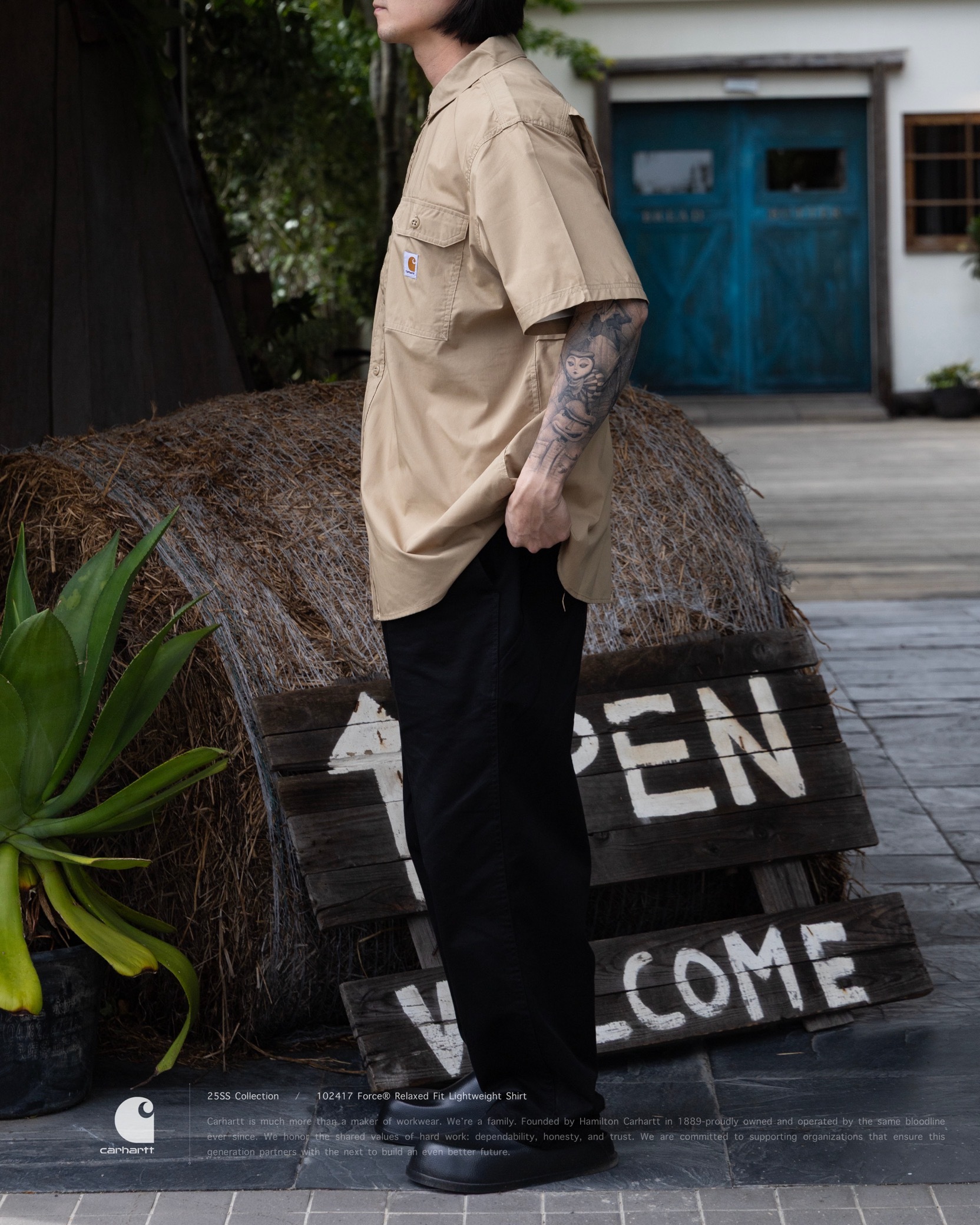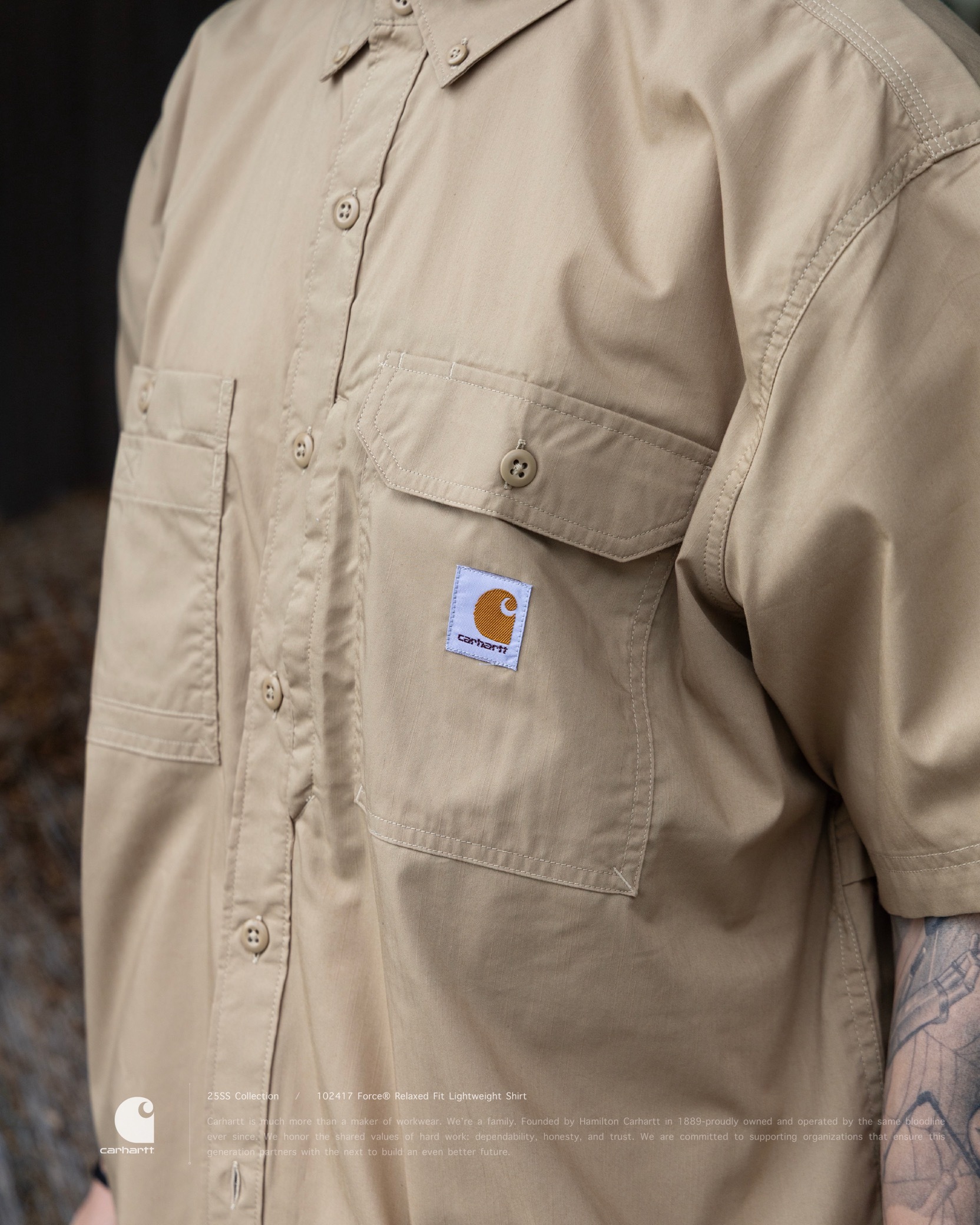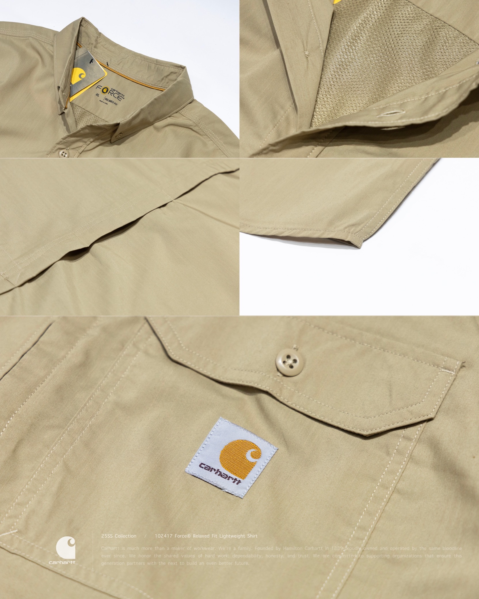 [ Carhartt Force® 技術. FastDry® 快速乾燥 . Stain Breaker® 防汙技術 . 吸濕排汗 . 防曬立領 . 後幅透氣網眼 . 雙口袋 . 隱藏拉鍊 . 短袖襯衫 . 工作襯衫 ]