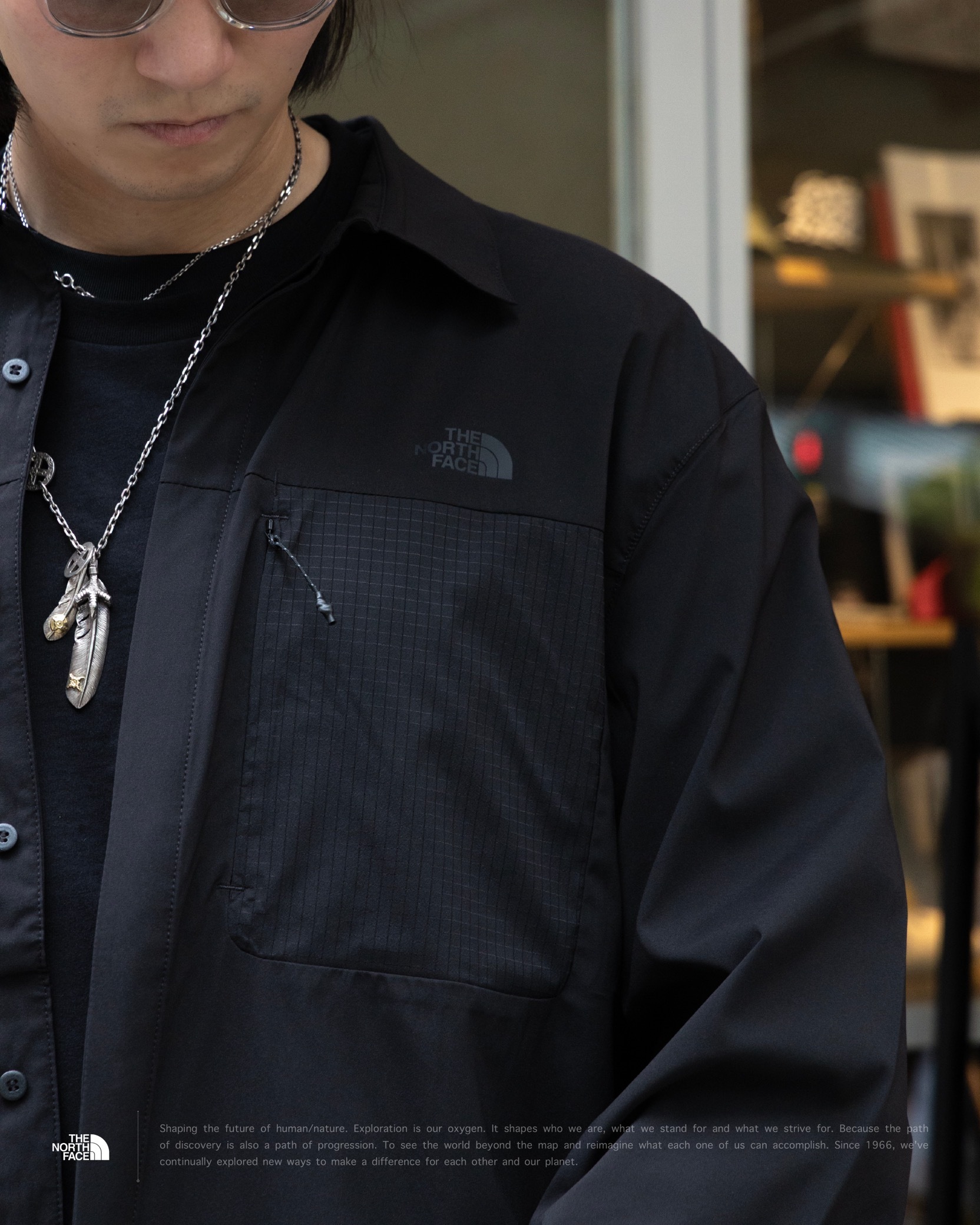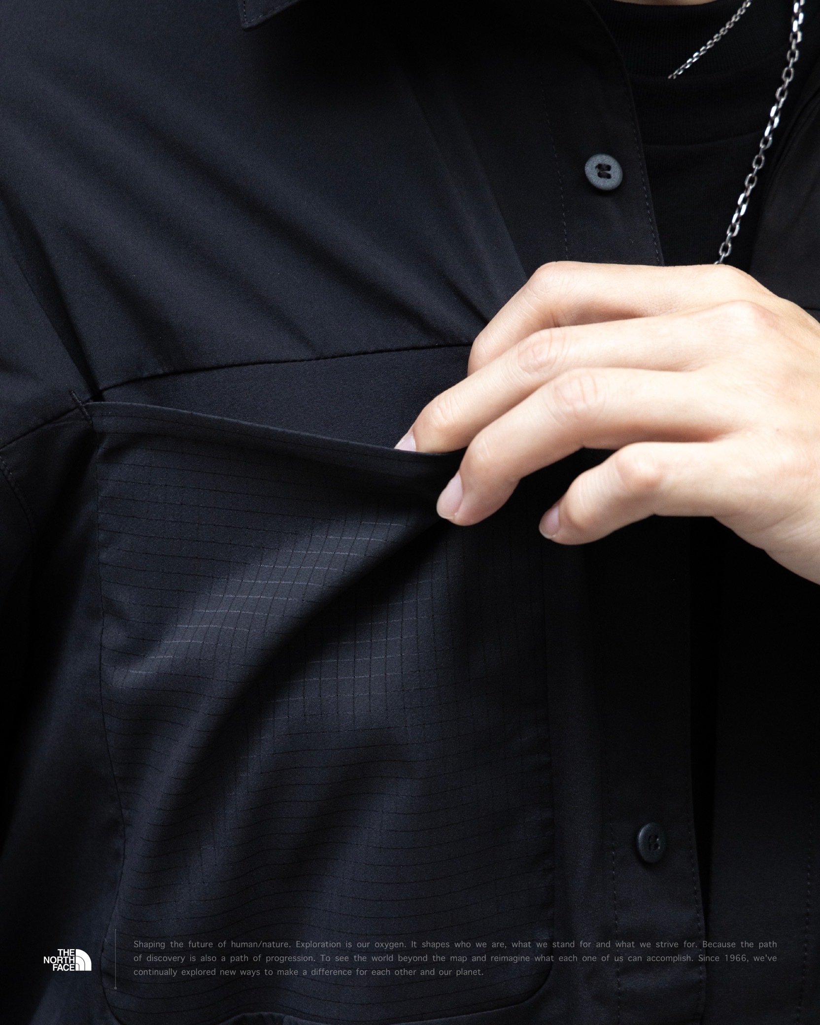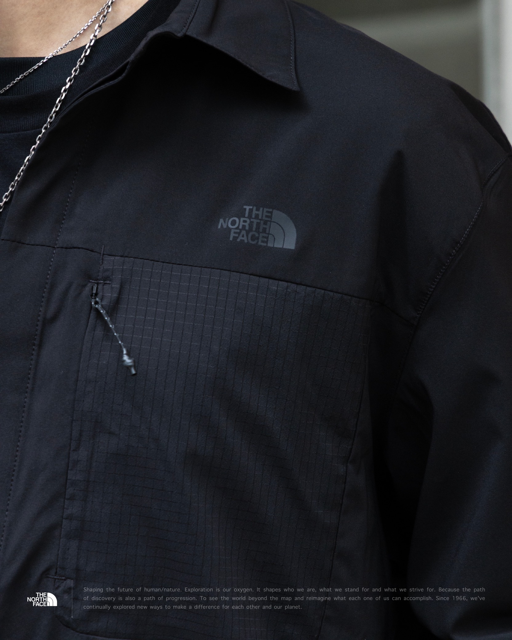 [ LIGHTRANGE™ 科技面料 . UPF40+ 抗UV . 背部透氣結構 . 胸前拉鍊袋 . Non-PFC DWR 防潑水 . 輕量快乾 . 高透氣 . 多層次穿搭 . 機能 . 長袖襯衫 ]