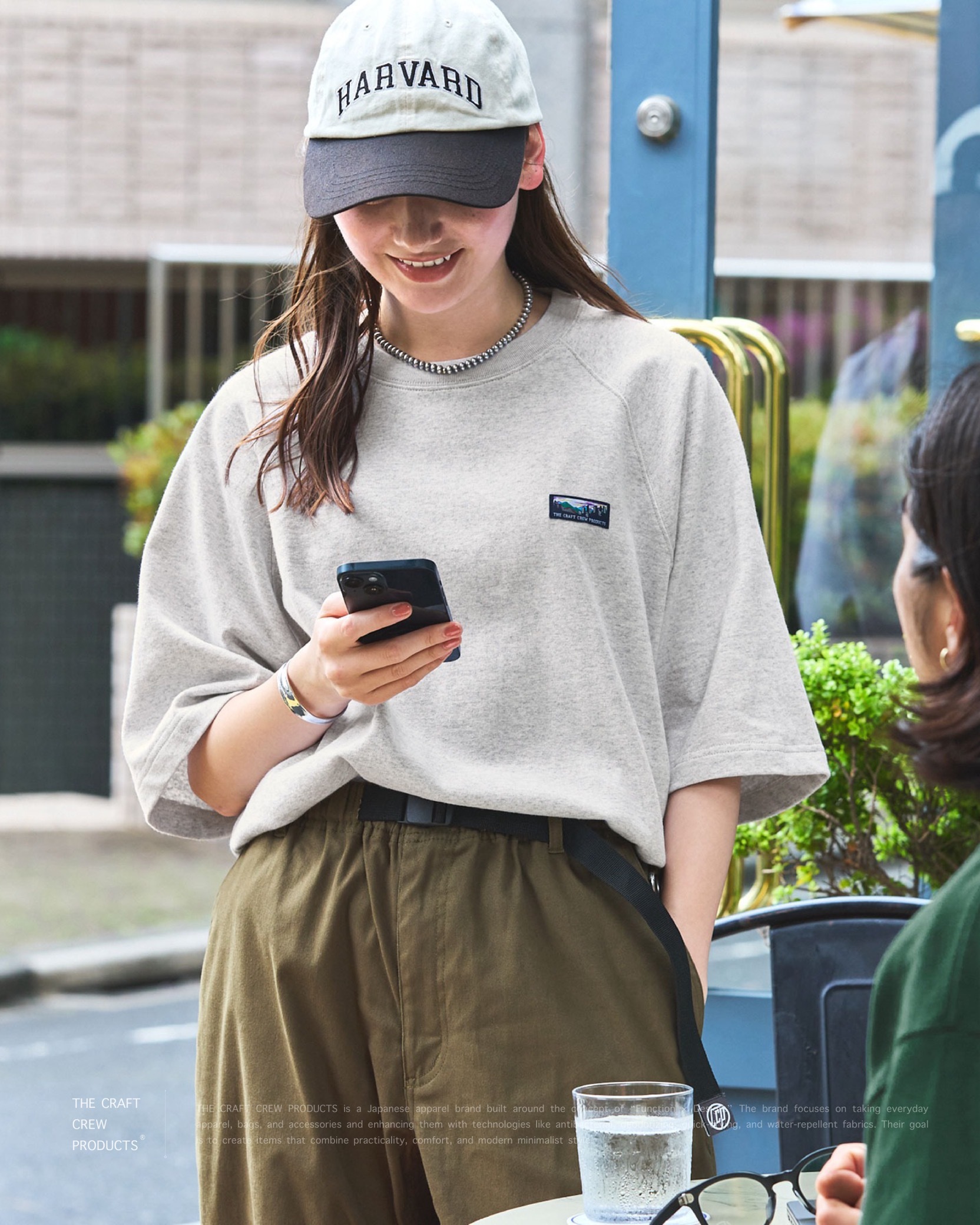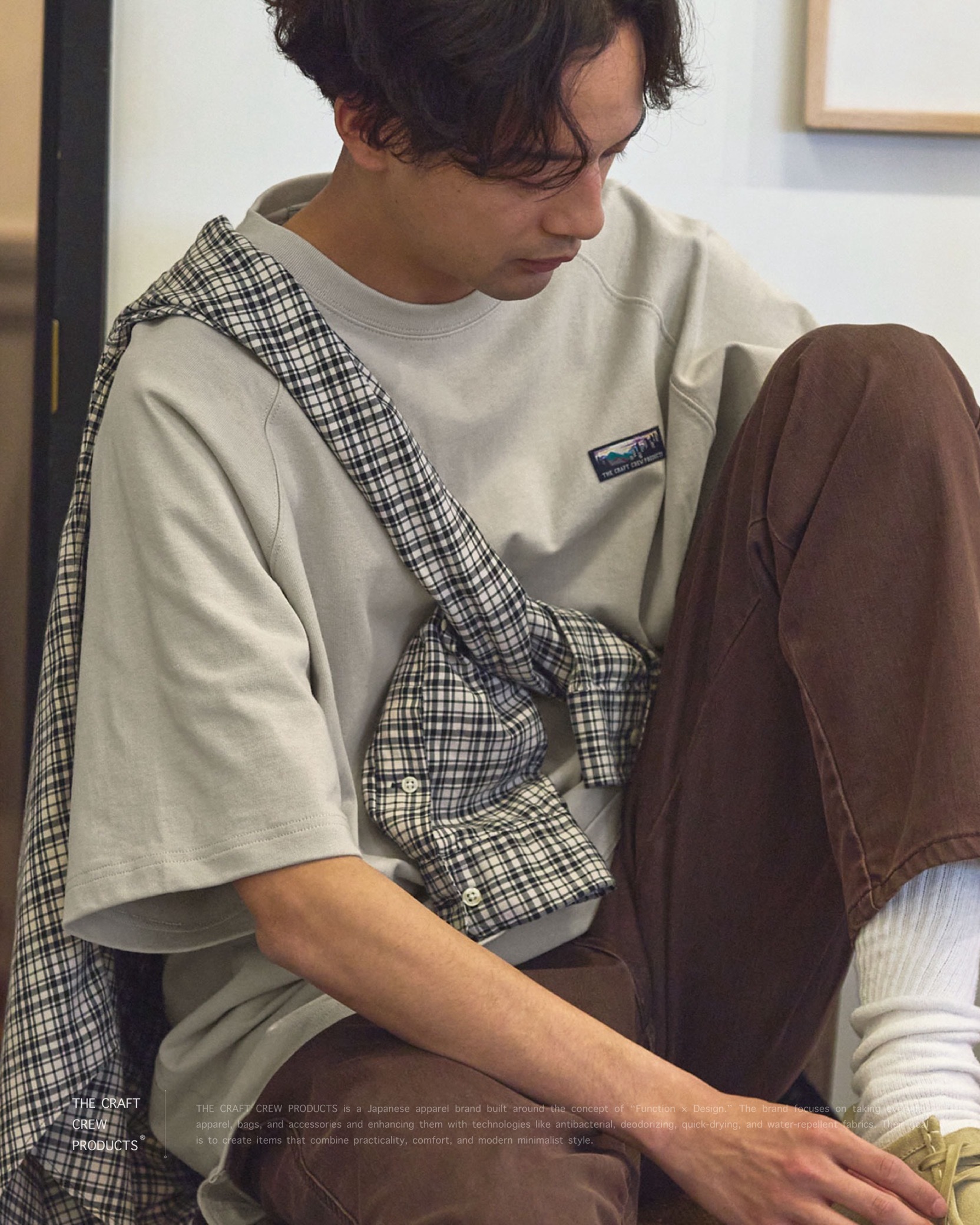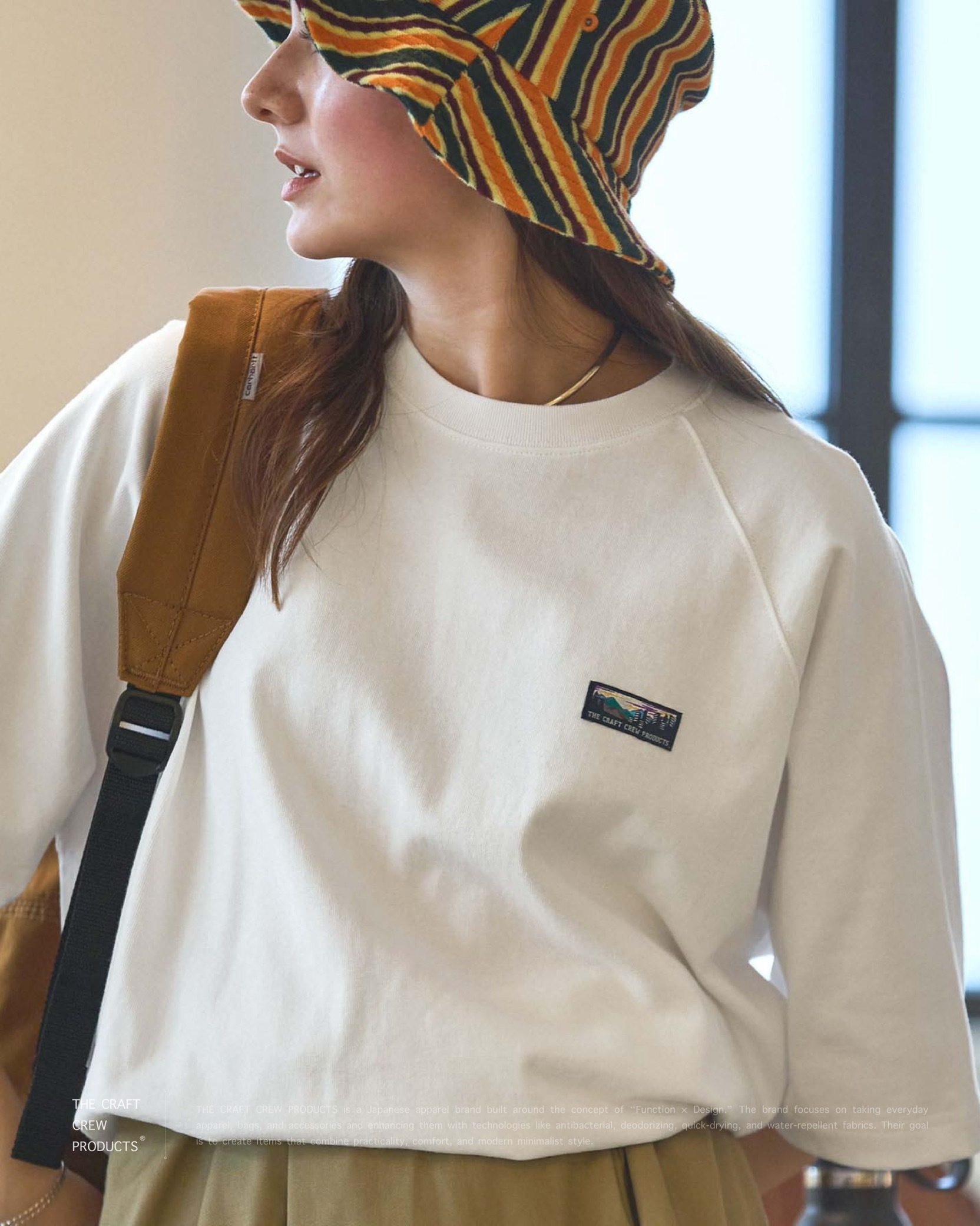 [ ヘビーウェイト . 機能布料 . 抗菌 . 防臭 . ビッグシルエット . ラグランスリーブ . クルーネック . 半袖Tシャツ . 日版寬鬆 . 刺繡布標 . 全季節著用 . 短袖 ]