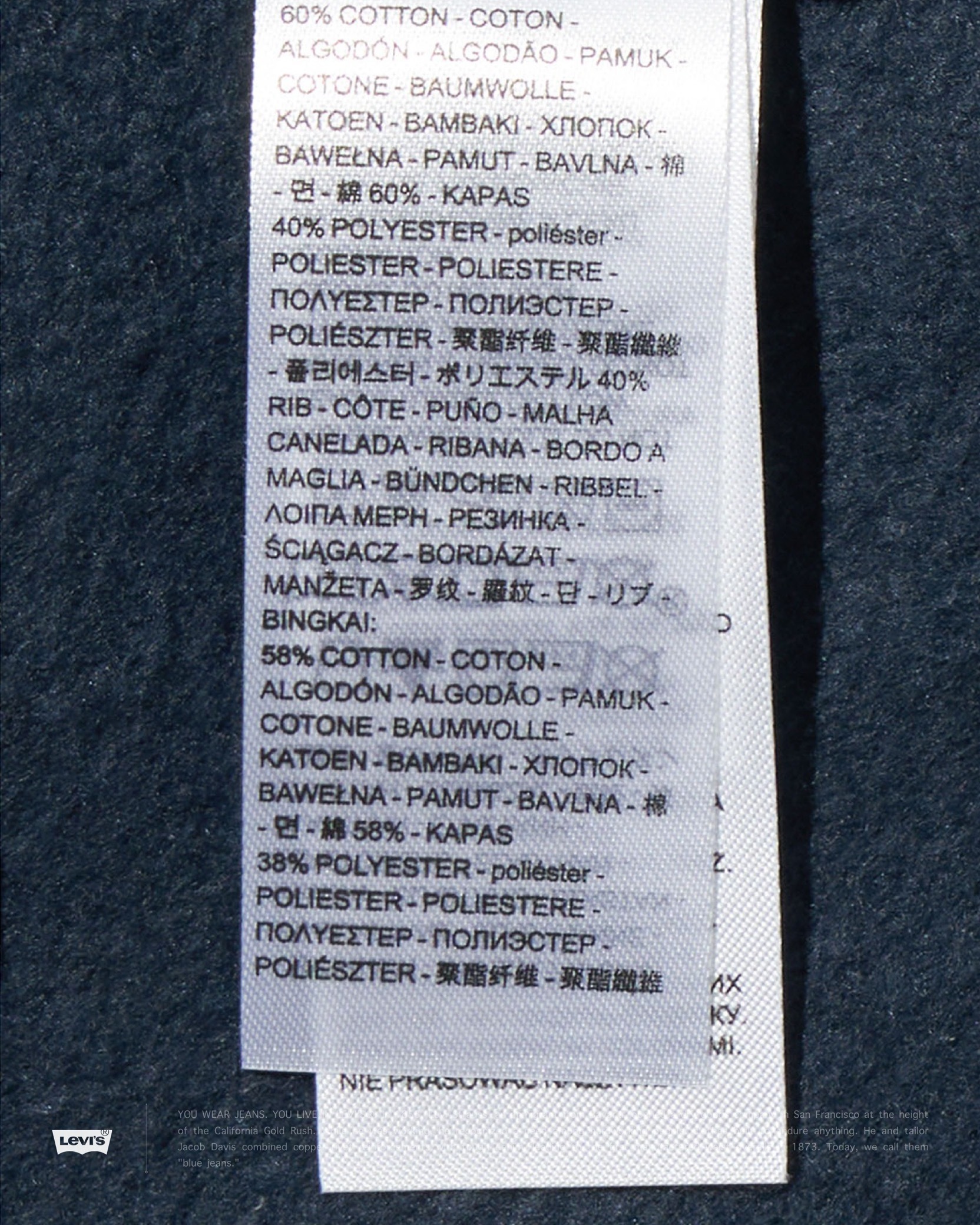[ 60% cotton . 40% polyester . 厚磅刷毛棉 . 側邊 Levi's 經典咬標 . 連帽衛衣 ]