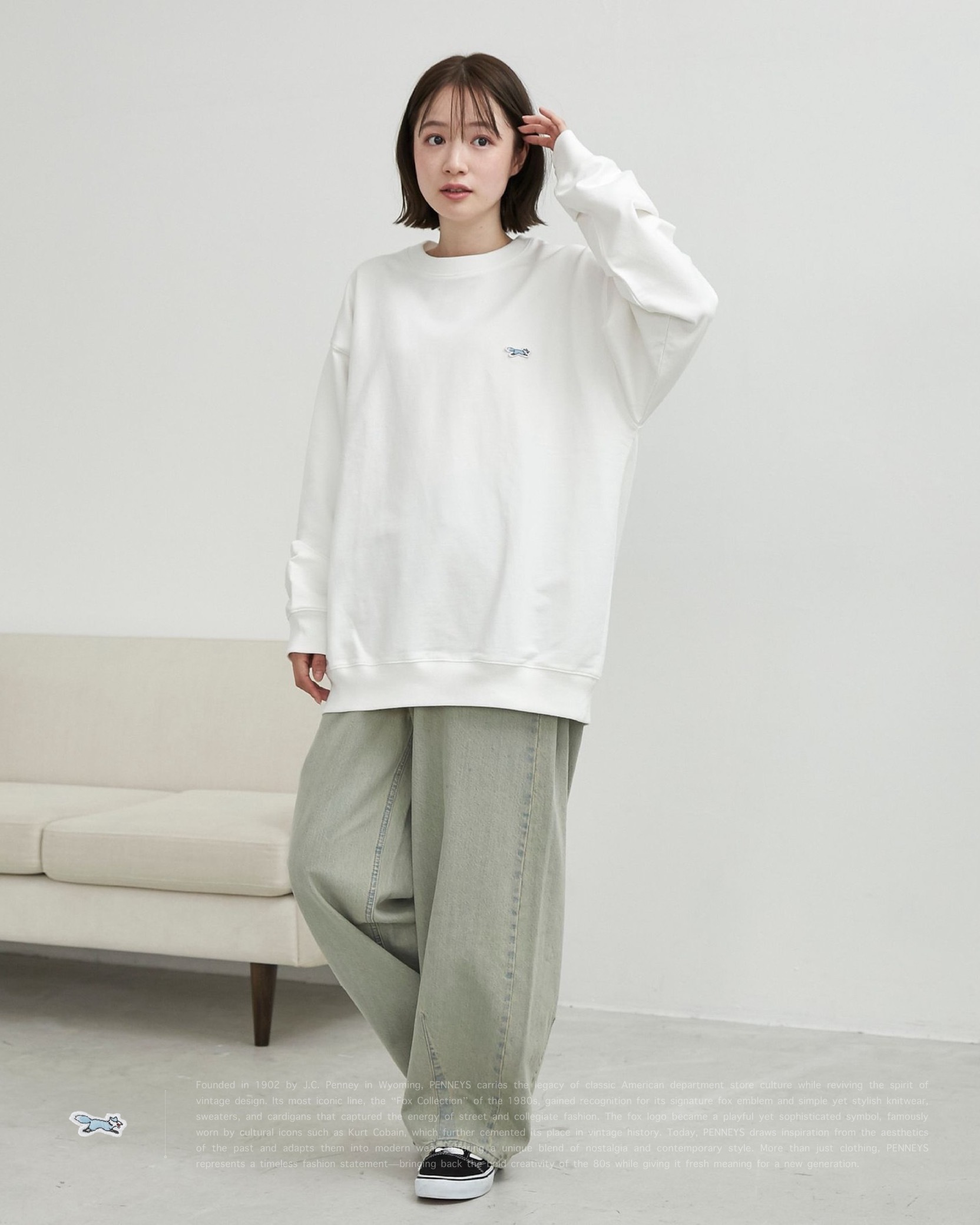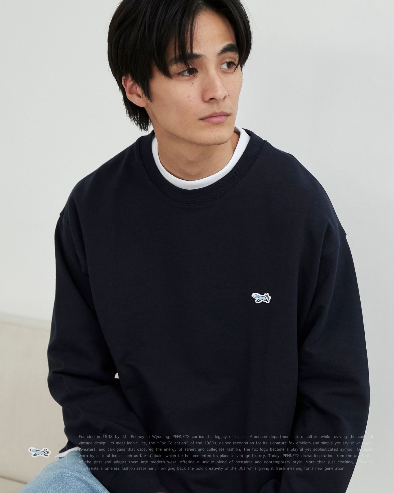 [ Penneys × COEN 聯名 . ぺニーズ . 別注 クリアコットン . クルーネック スウェット . Fox Logo 刺繡 . 全棉毛圈布 . 100% Cotton . 中厚度 . 衛衣 . 落肩寬鬆 . 秋季衛衣 . 日系休閒 . 日本限定 ]