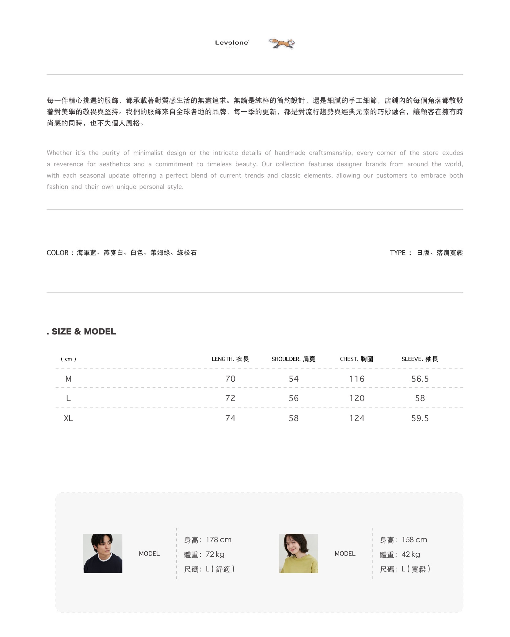 TYPE:落肩寬鬆、建議按照體重挑選。( 詳細尺寸請見最後一張圖 )