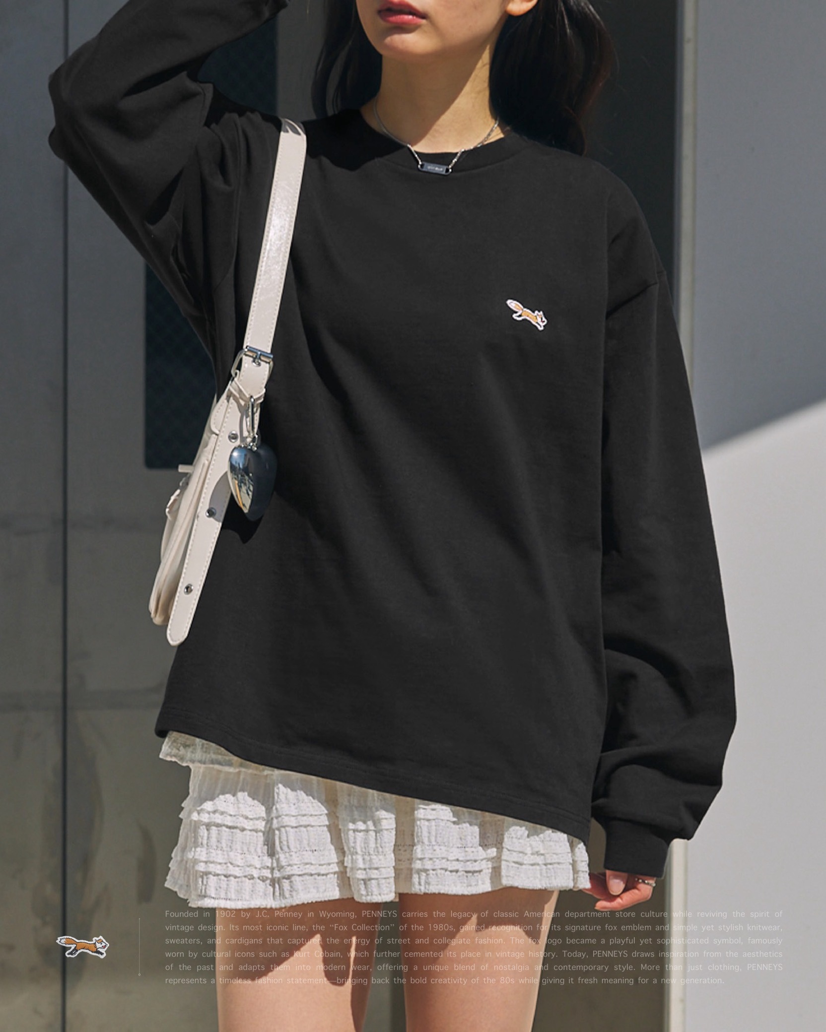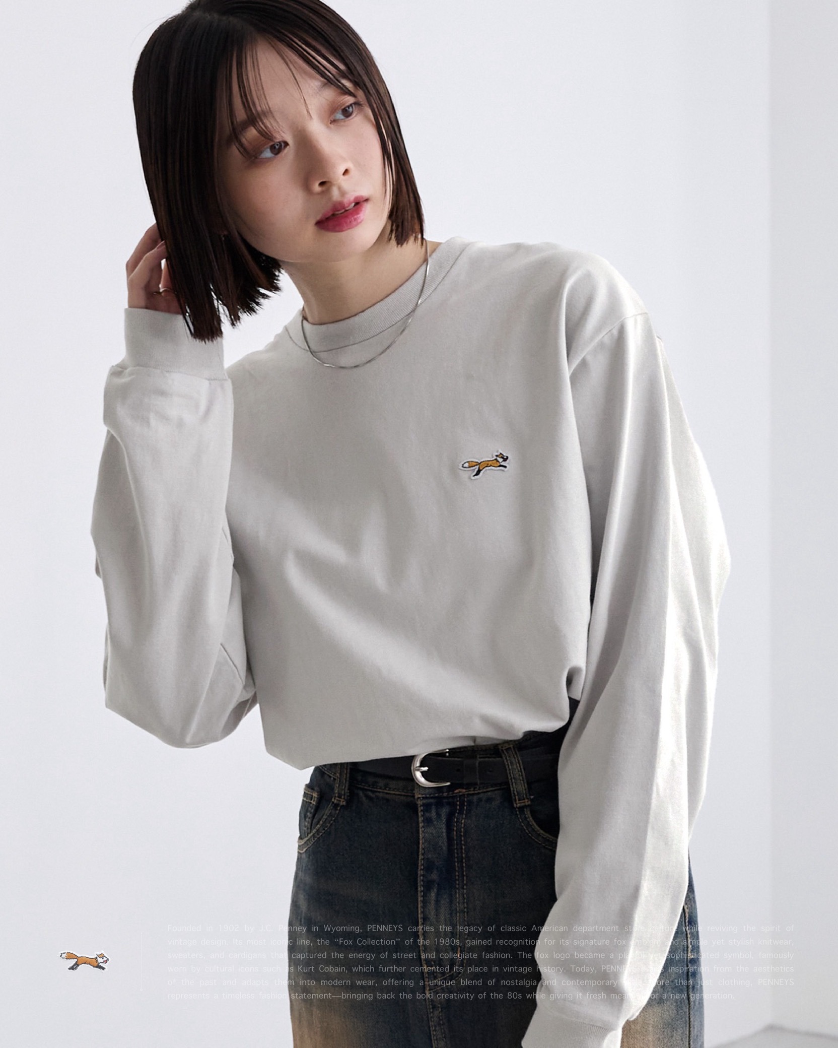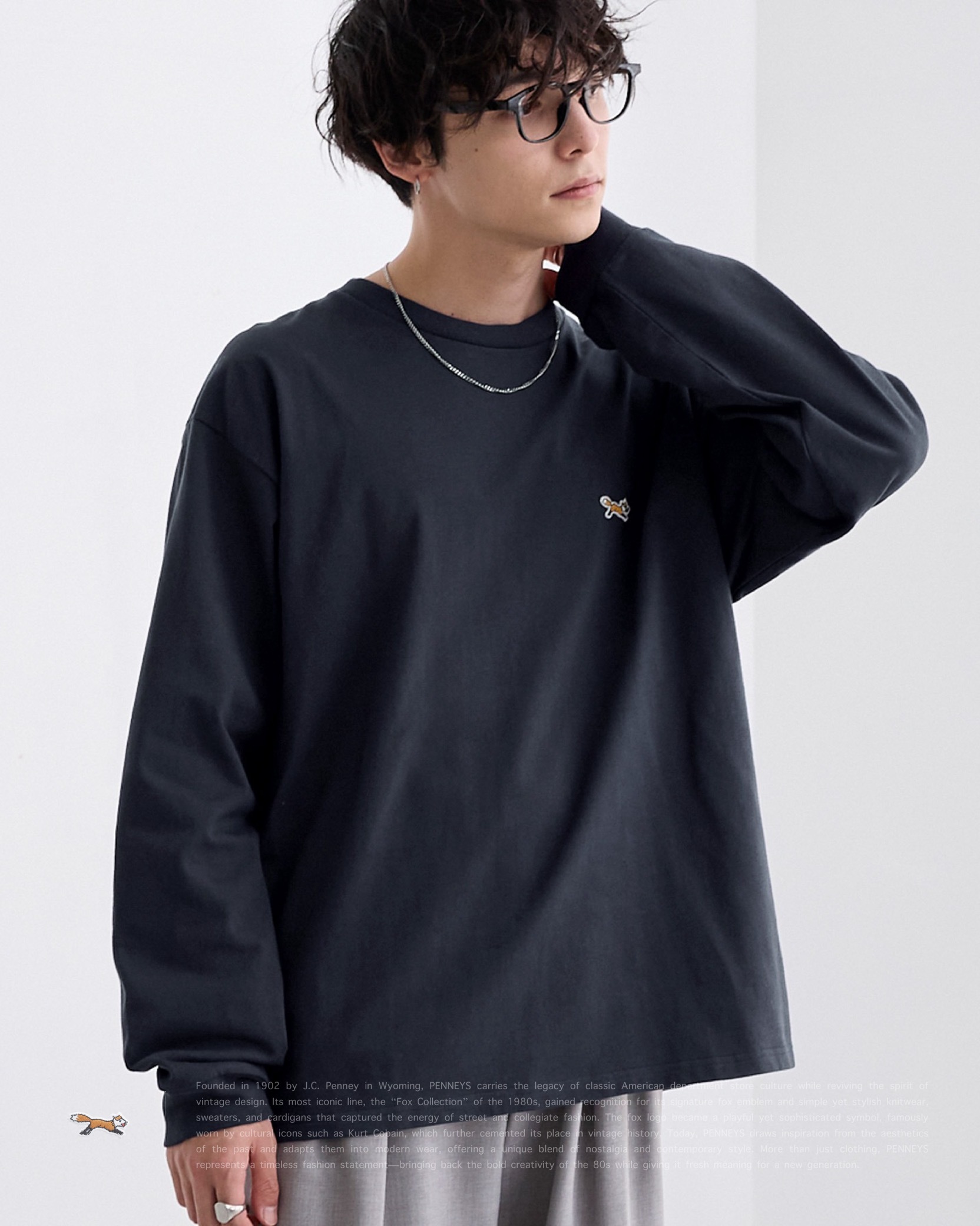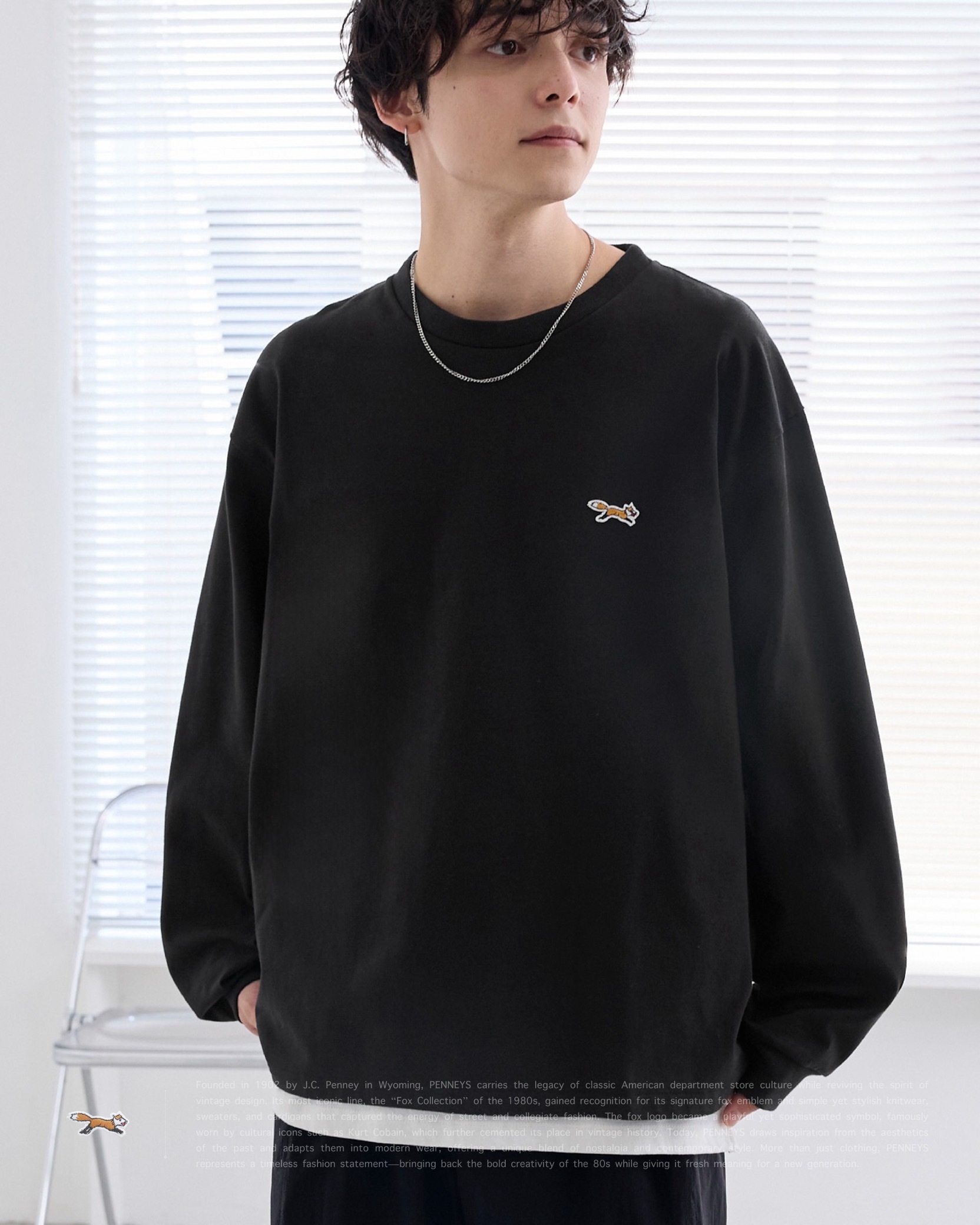[ PENNEYS . 狐狸 . 別注 THE FOX . 刺繍 . 長袖Tシャツ . 100% Cotton . 純棉 . 小厚磅 . 落肩寬鬆 . 美式學院風 . 日系 . 秋季長袖 . 日本限定 ]