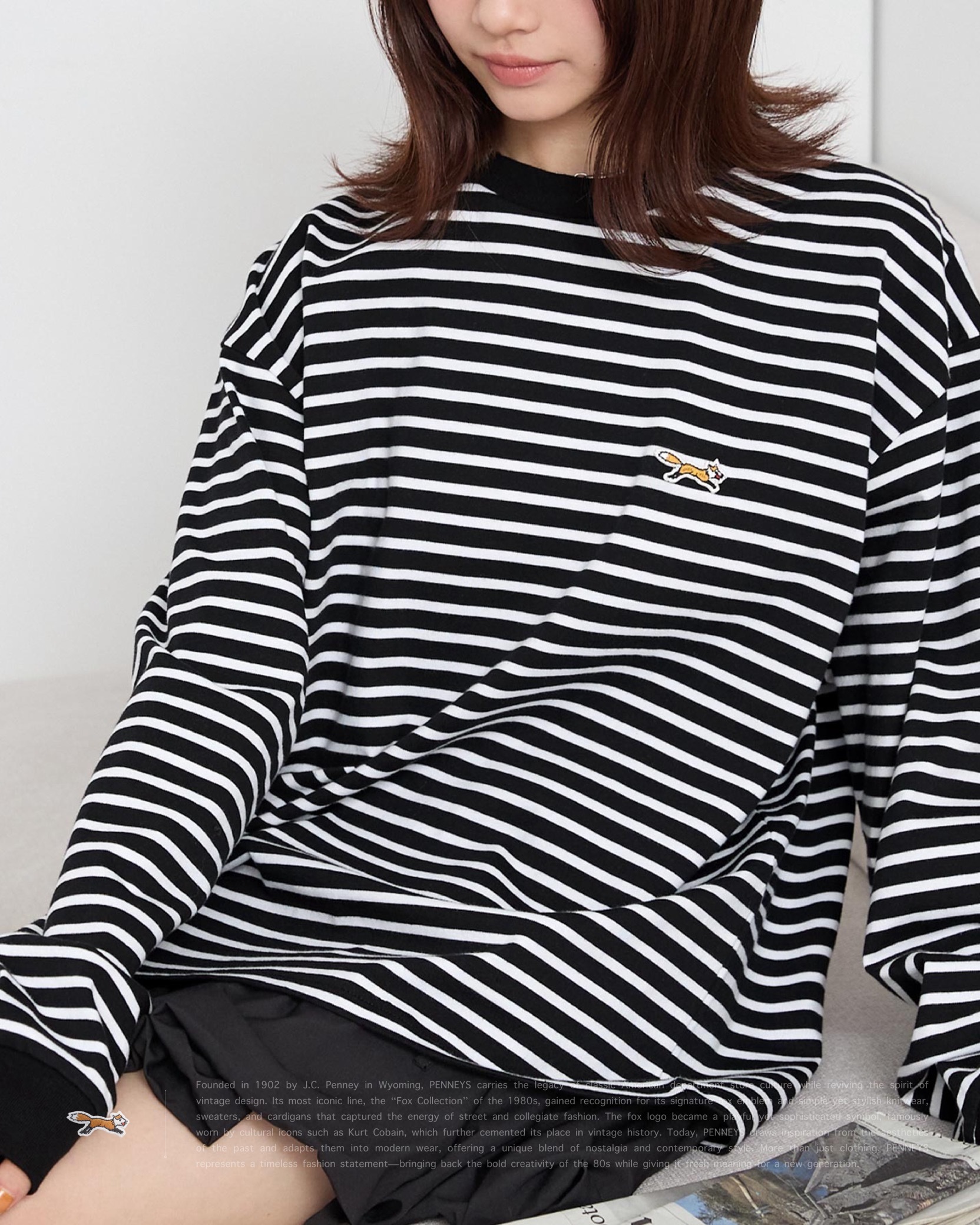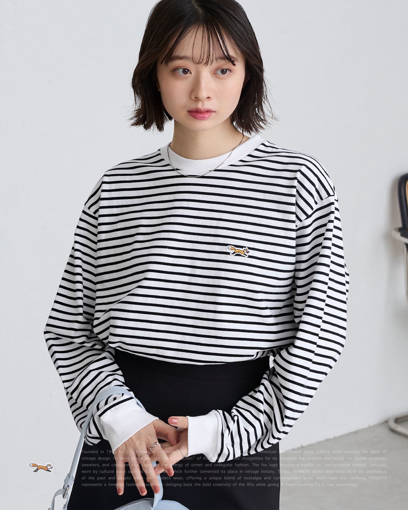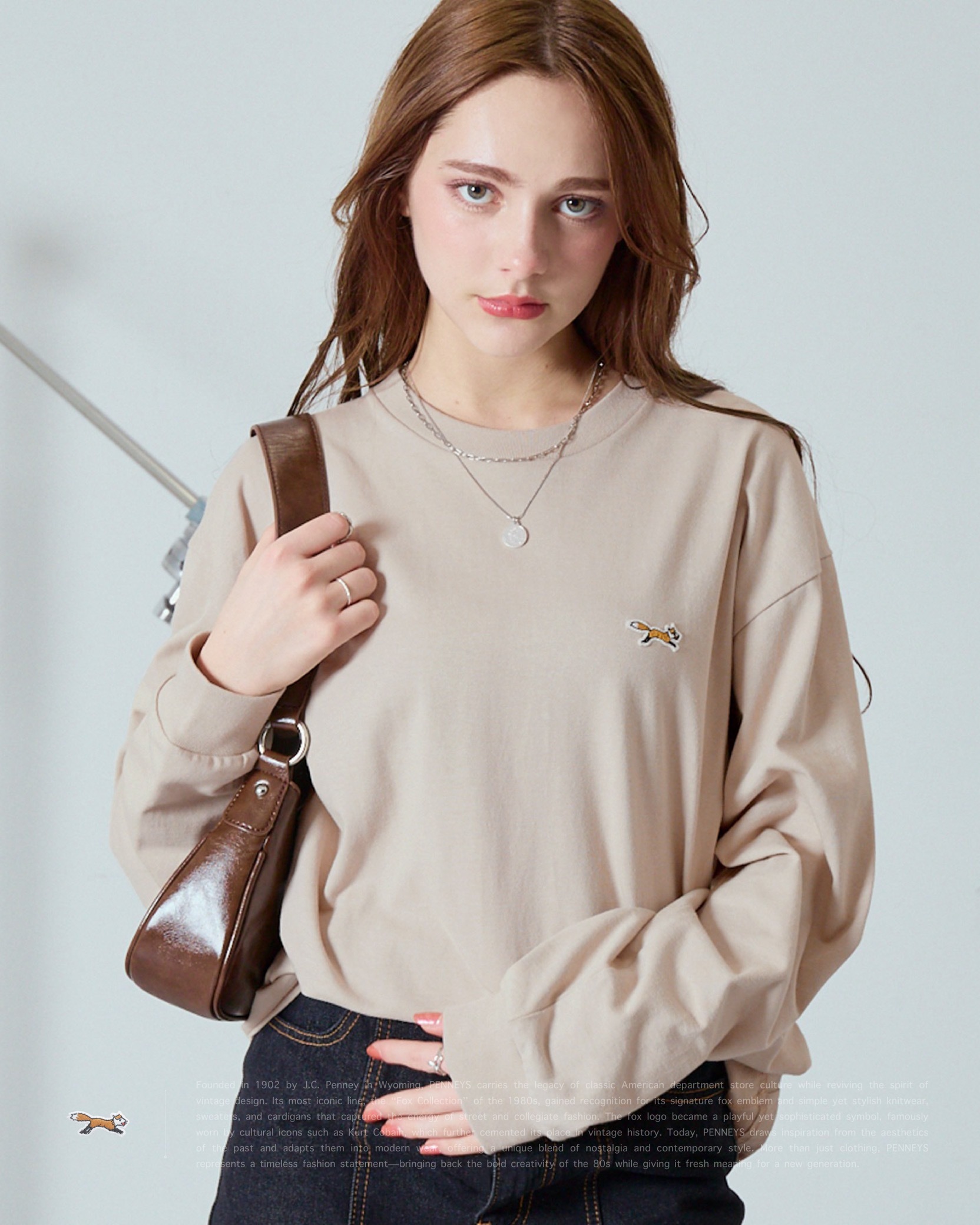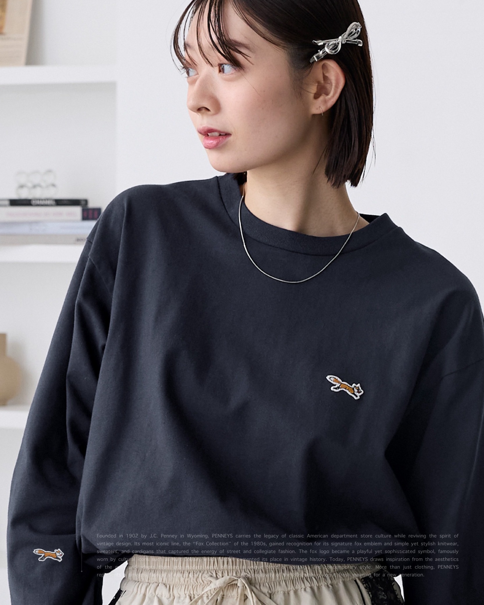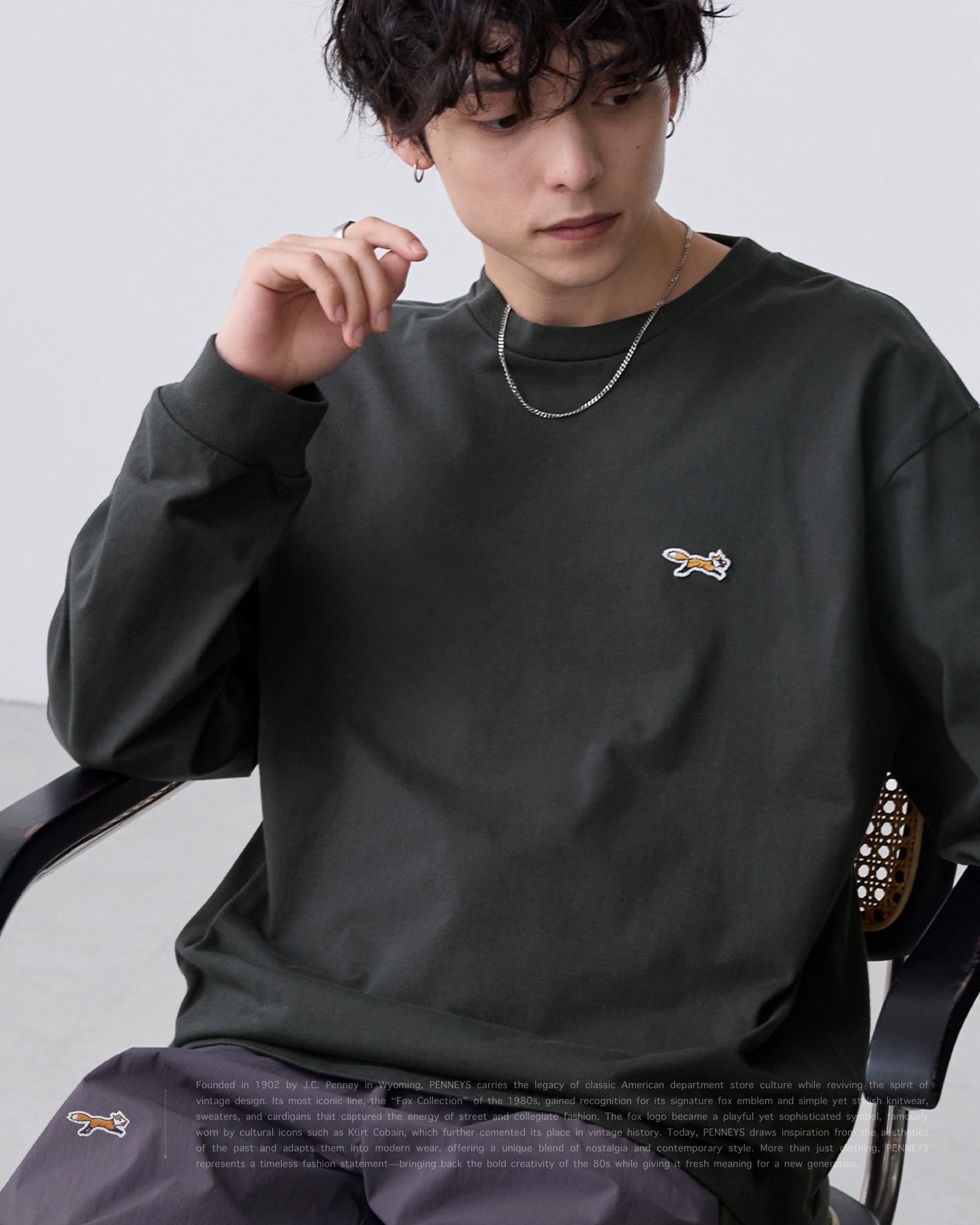 [ PENNEYS . 狐狸 . 別注 THE FOX . 刺繍 . 長袖Tシャツ . 100% Cotton . 純棉 . 小厚磅 . 落肩寬鬆 . 美式學院風 . 日系 . 秋季長袖 . 日本限定 ]