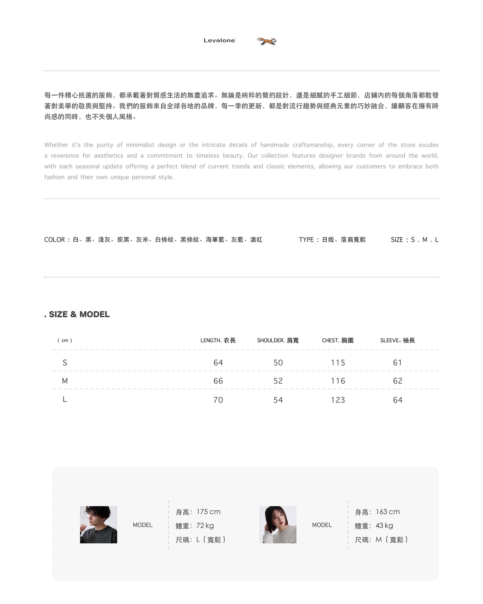 TYPE:落肩寬鬆、建議按照體重挑選。( 詳細尺寸請見最後一張圖 )
