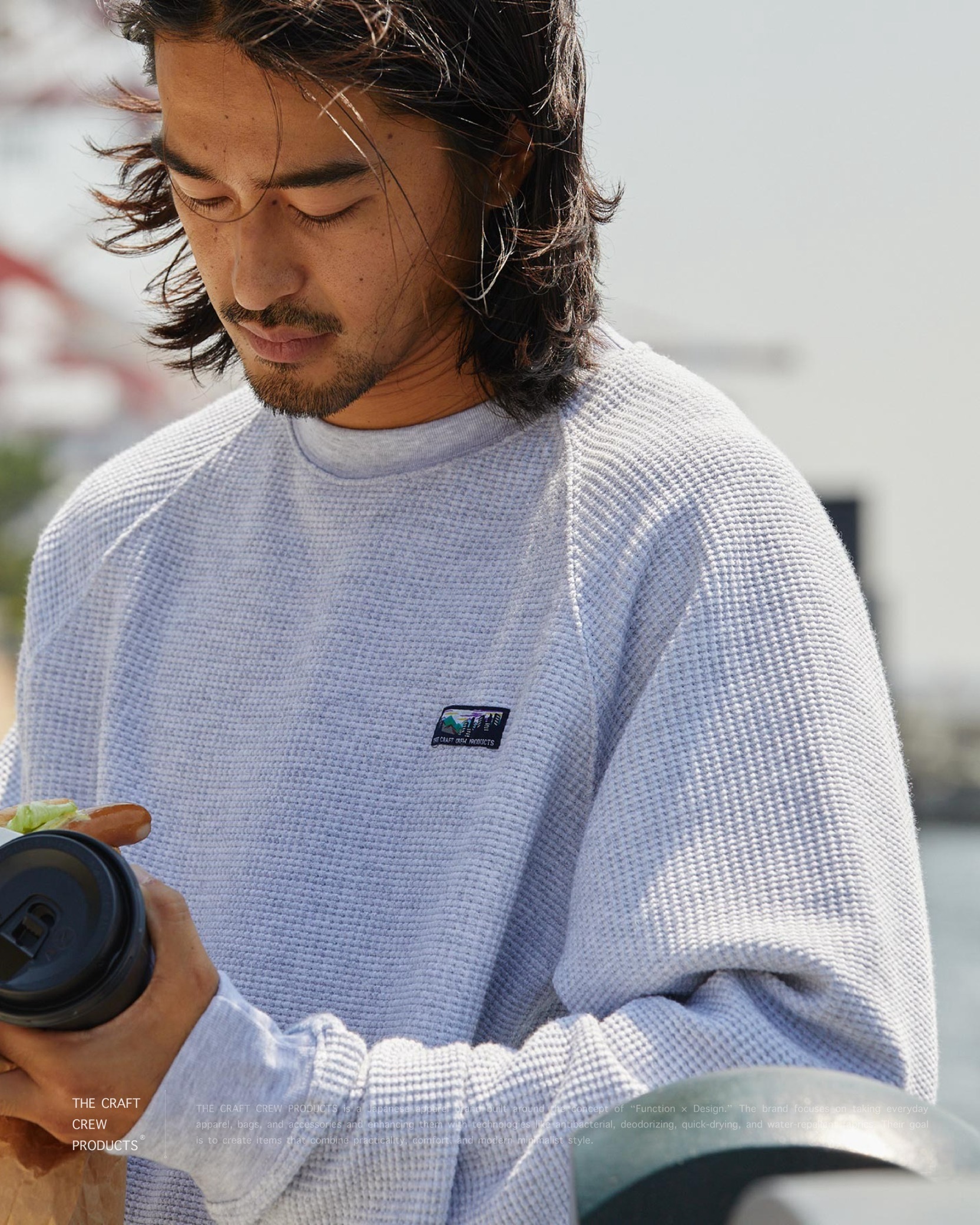 “ 抗菌・防臭機能を備えたヘビーウェイトワッフル素材で、日常使いに確かな快適性と存在感をもたらす一着 ”