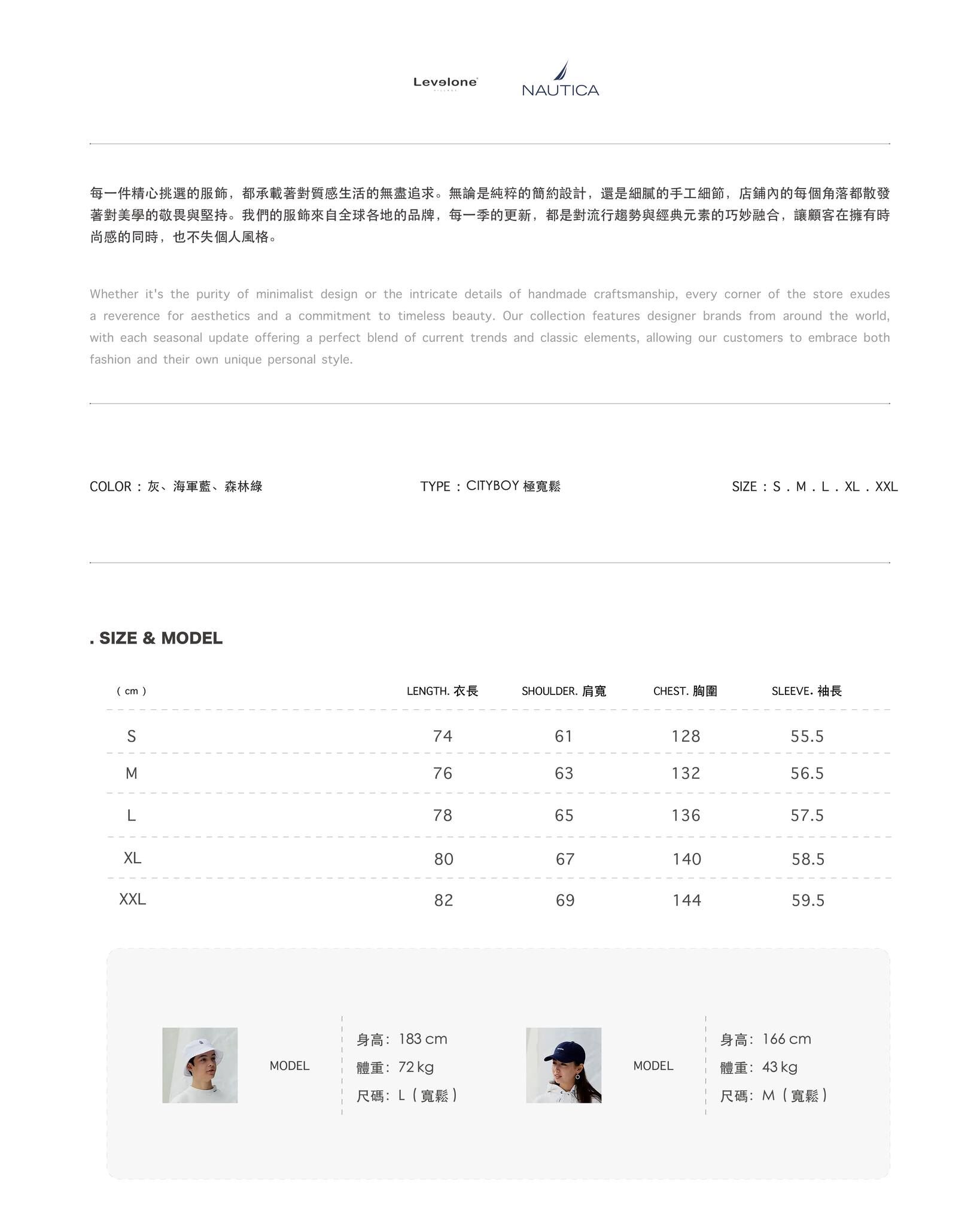 TYPE:Cityboy 極寬鬆、建議按照體重挑選。( 詳細尺寸請見最後一張圖 )