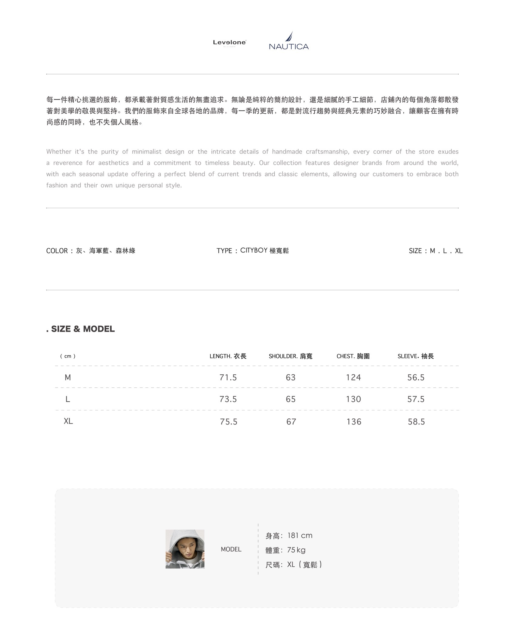 TYPE:Cityboy 極寬鬆、建議按照體重挑選。( 詳細尺寸請見最後一張圖 )