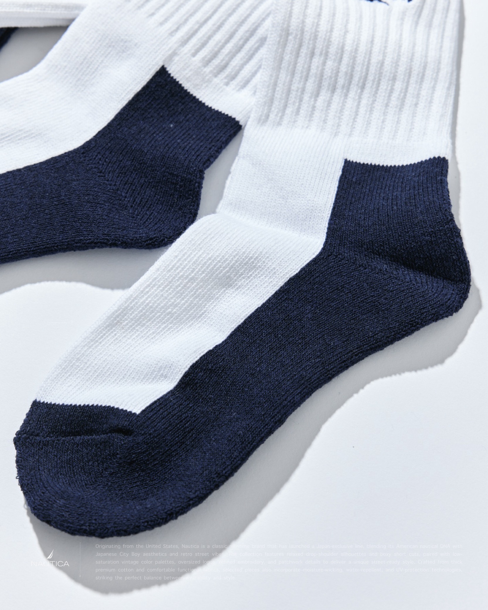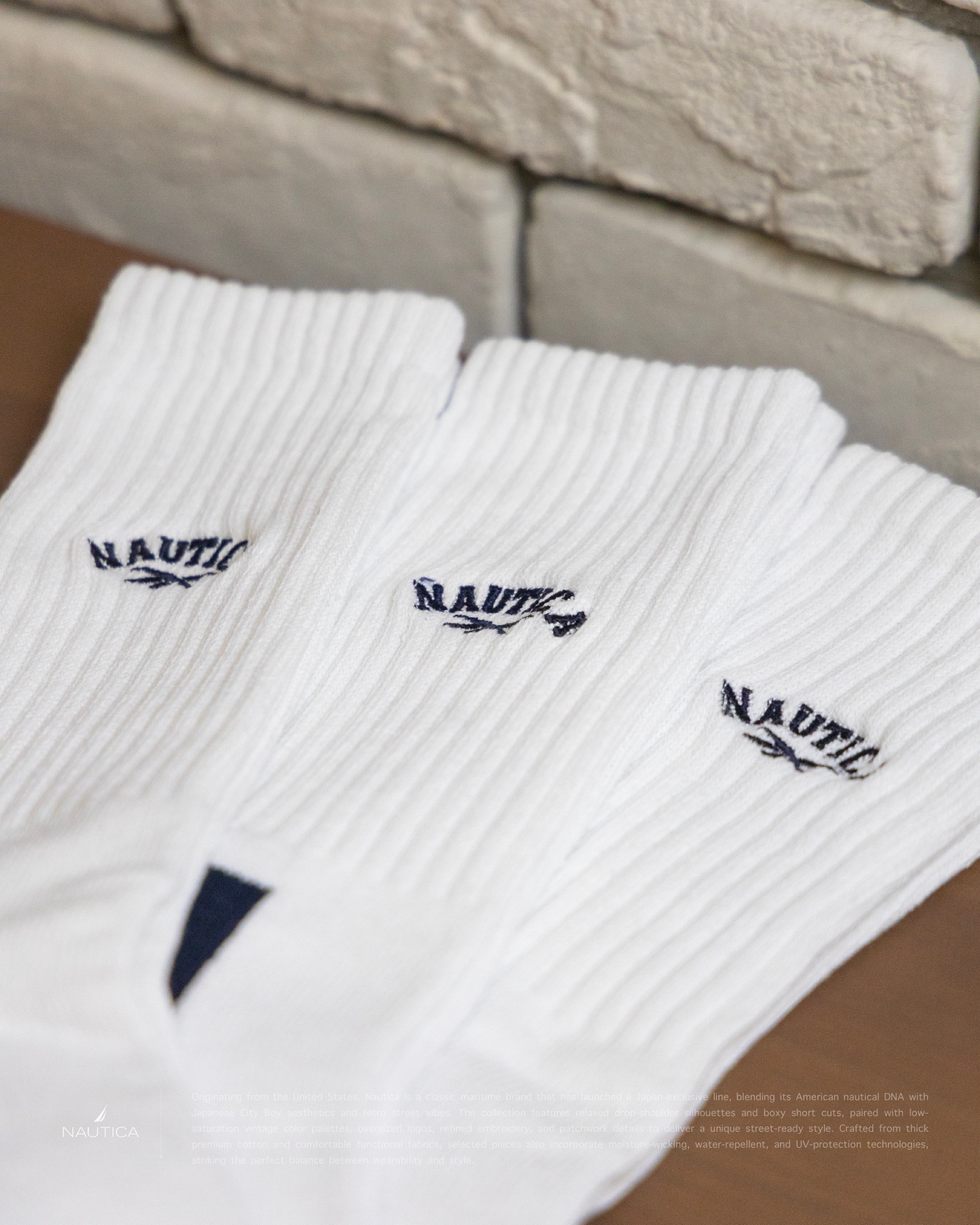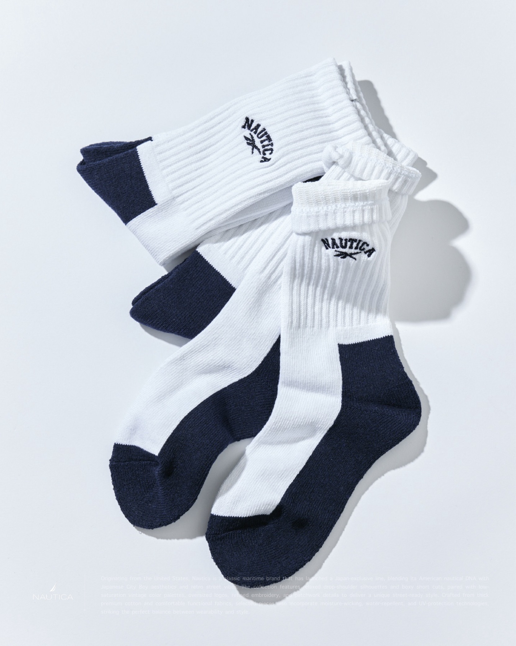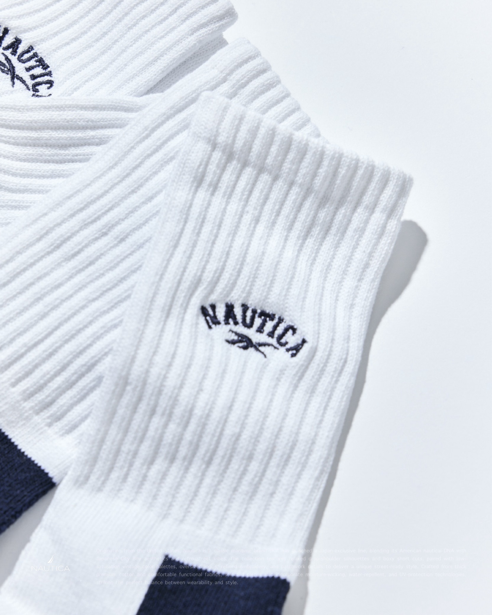 [ NAUTICA . Reebok . ダブルネーム . ワンポイント刺繍 . D729刺繍 . リブソックス . 毛巾底 . 中厚磅 . 鬆軟腳感 . 高包覆性 . 高彈性 . 回復力佳 . 透氣設計 . 弓足加厚支撐 . 3 Pack Socks . 日系聯名 . 限量發售 ]