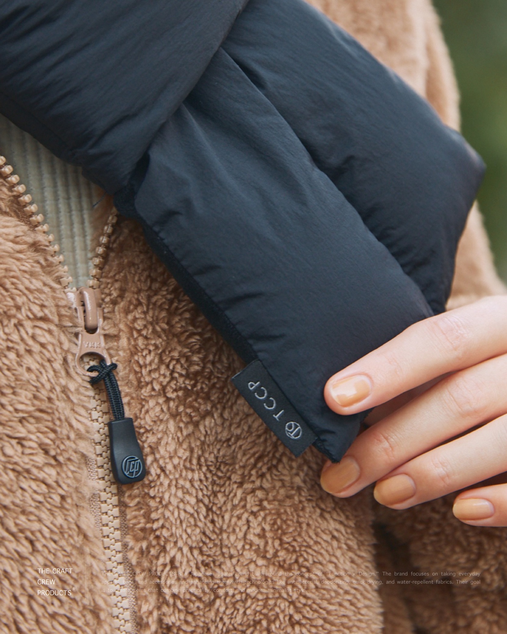 [ 発熱高機能中綿 . ETHERMALOFT . 軽量 × 高保温 . 蓬鬆纖維 . 自行發熱 . 熱轉換 . 光與遠紅外線を吸収し . 防撥水加工 . 柔軟羊毛素材 . 貼膚柔軟 . 不刺癢 ]