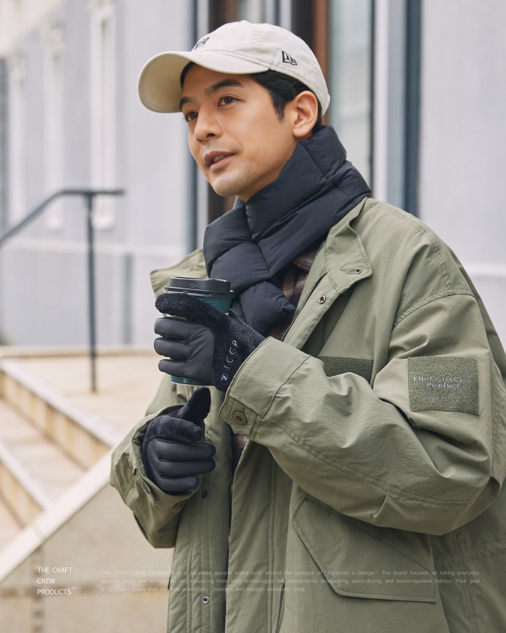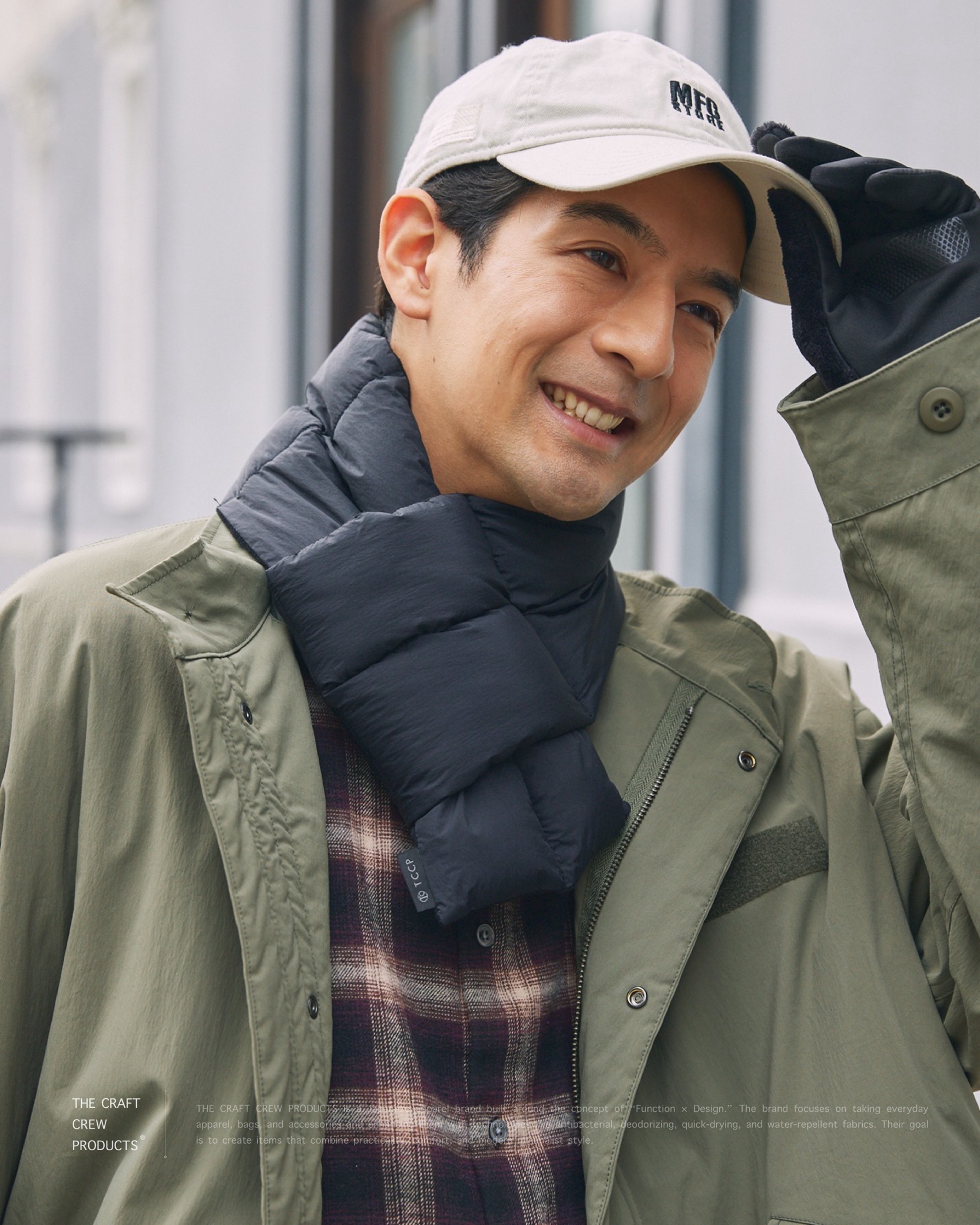 [ ETHERMALOFT® . ナイロン × ボアフリース . 自行發熱纖維 . 光與紫外線を吸収し熱へ変換 . 軽量 × 高保温 . 空気層保温構造 . 防撥水加工 . 撥水ナイロン表布 . 防風保暖 . 羊毛フリース裏地 . 柔軟貼膚 . 不刺癢 . 蓬鬆中空纖維 . 秋冬機能圍巾 ]