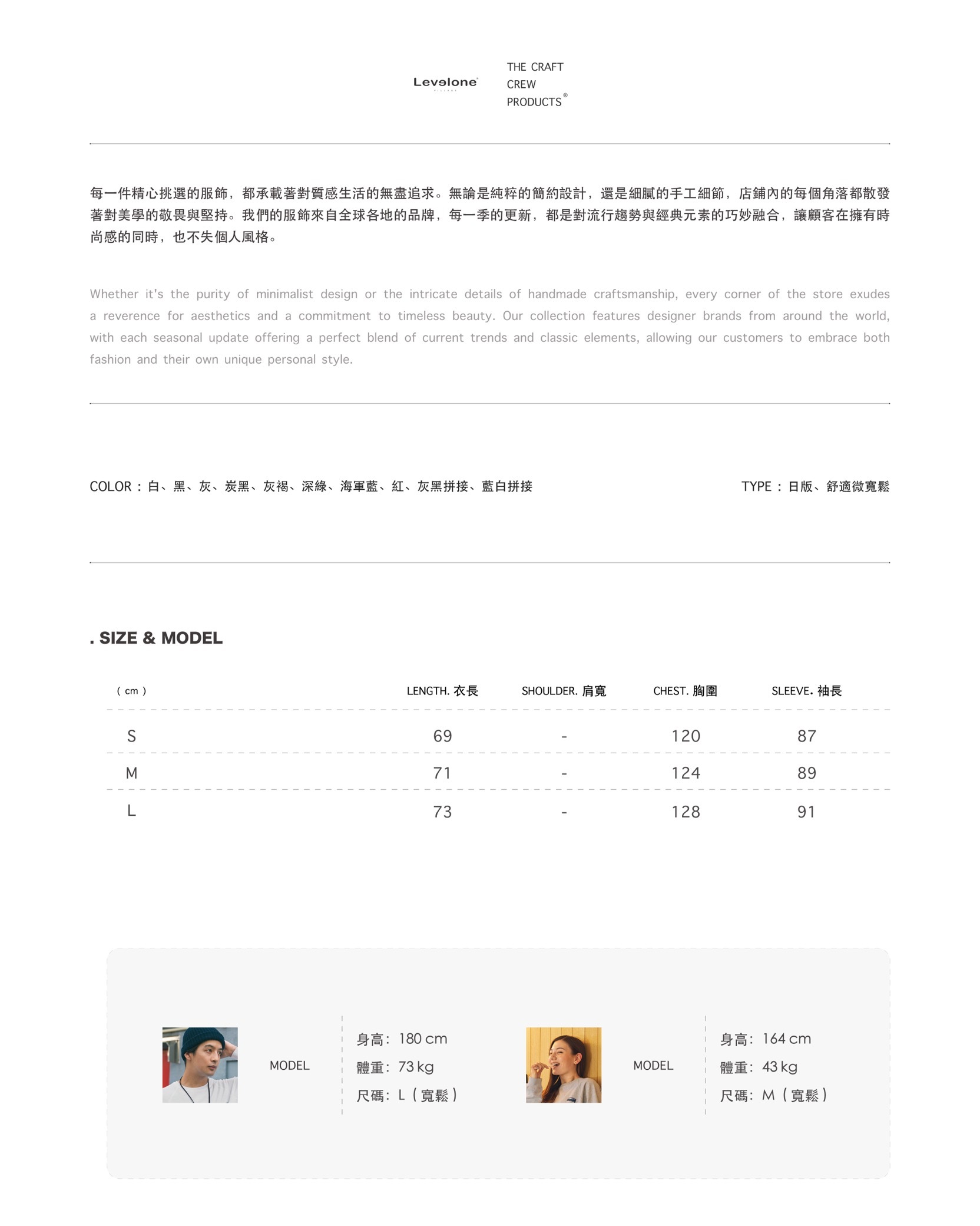 TYPE:落肩寬鬆、建議按照身高挑選。( 詳細尺寸請見最後一張圖 )