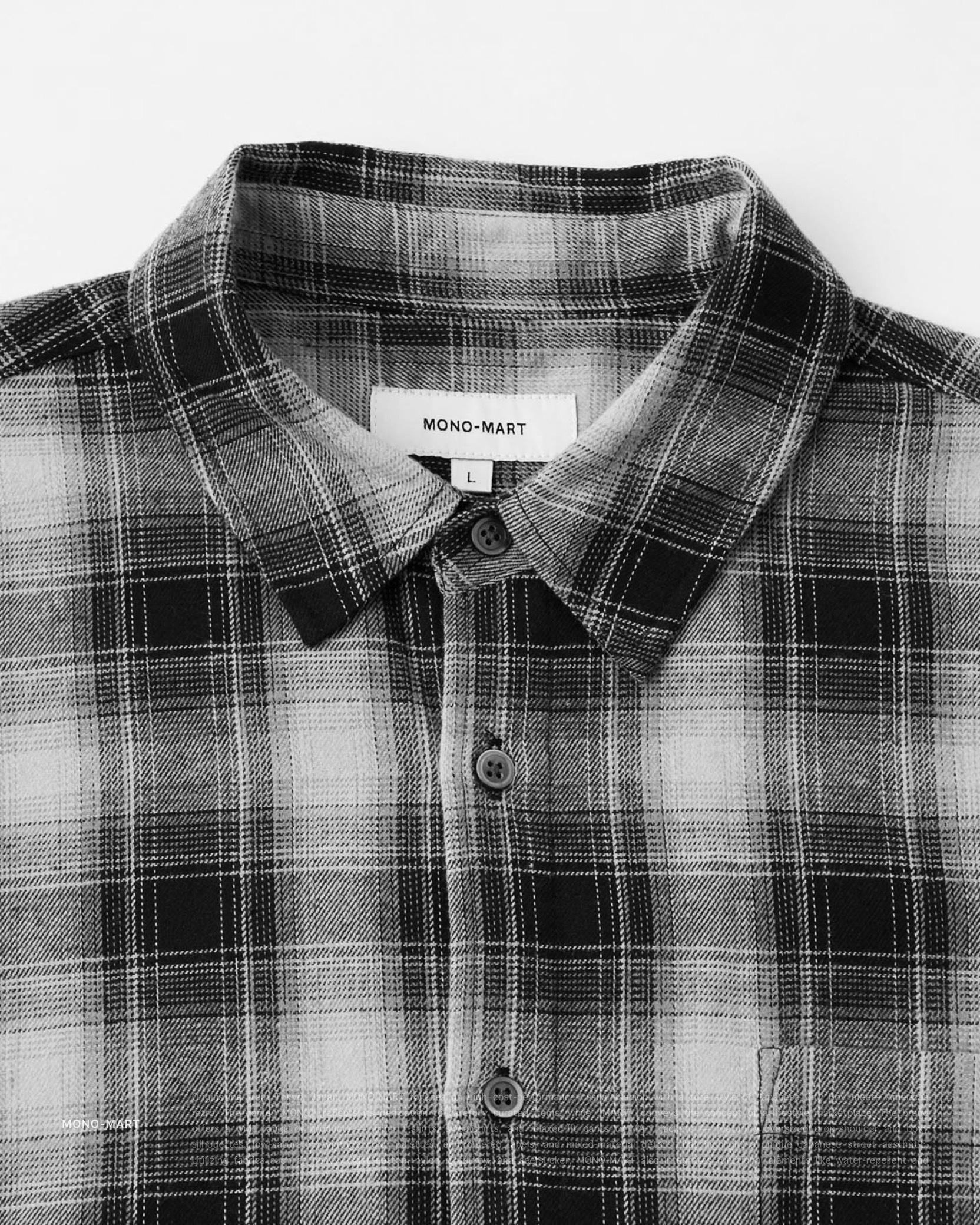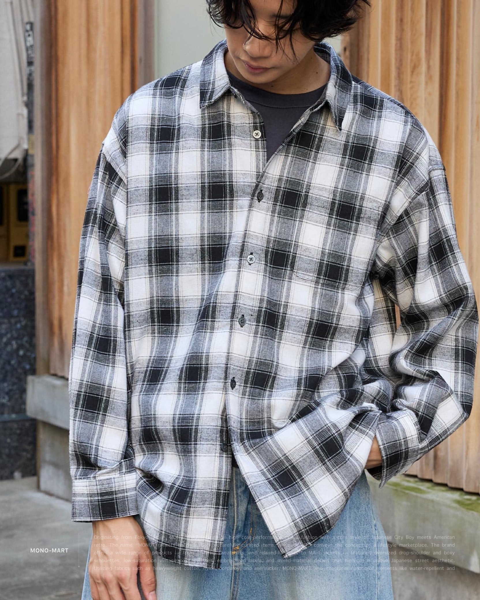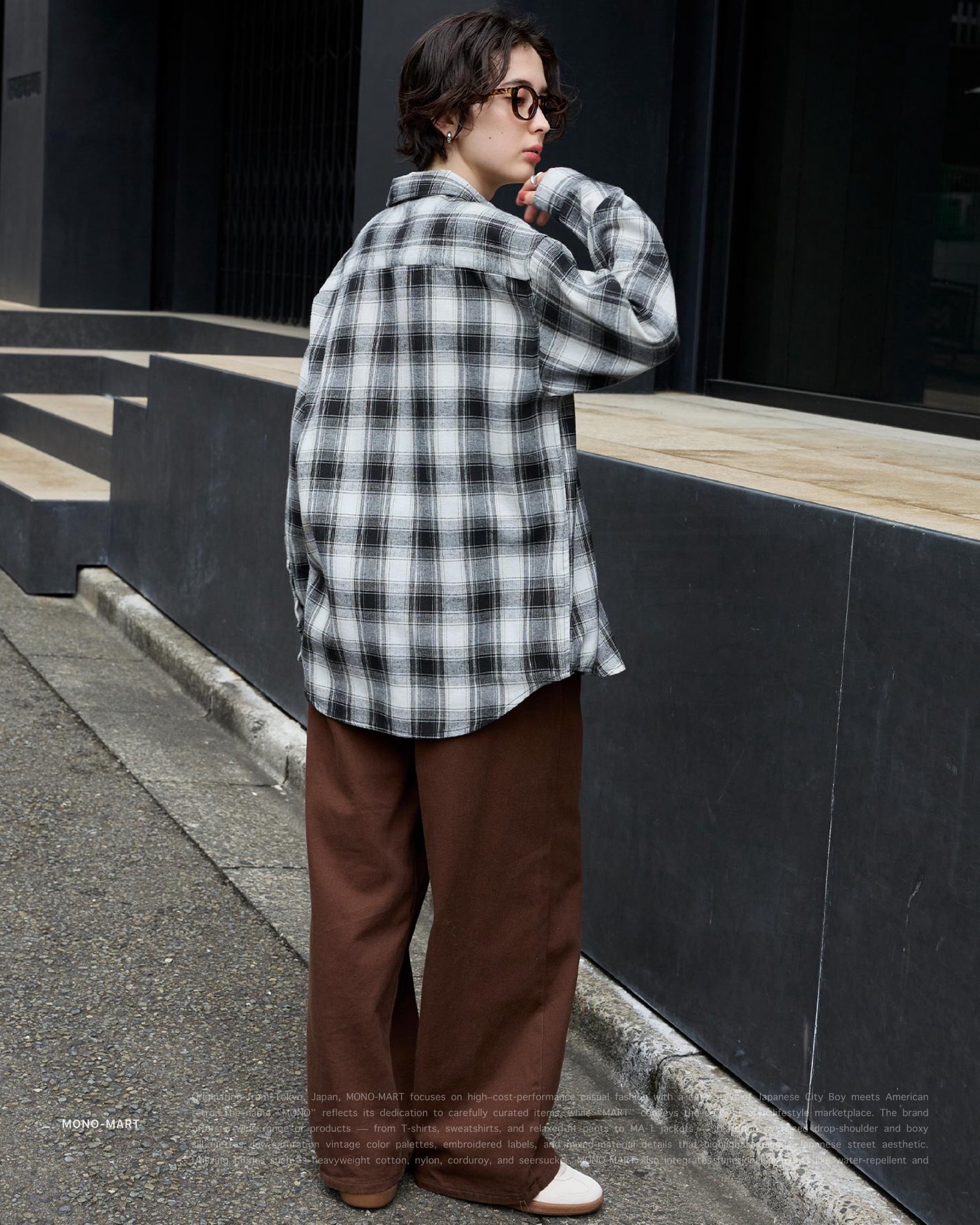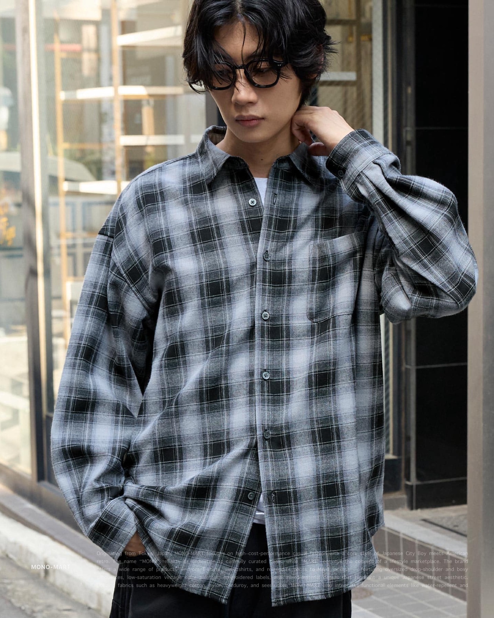 [ MONO-MART . Ombre Check Shirt . Oversized Shirt . 起毛シャツ . 純棉 . 漸層格紋設計 . 寬鬆版型 . 襯衫 . 日系City Boy . 胸前口袋 ]