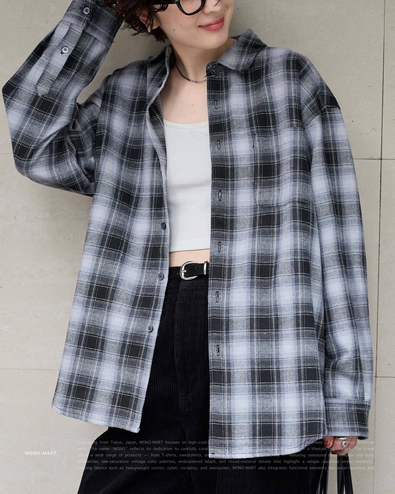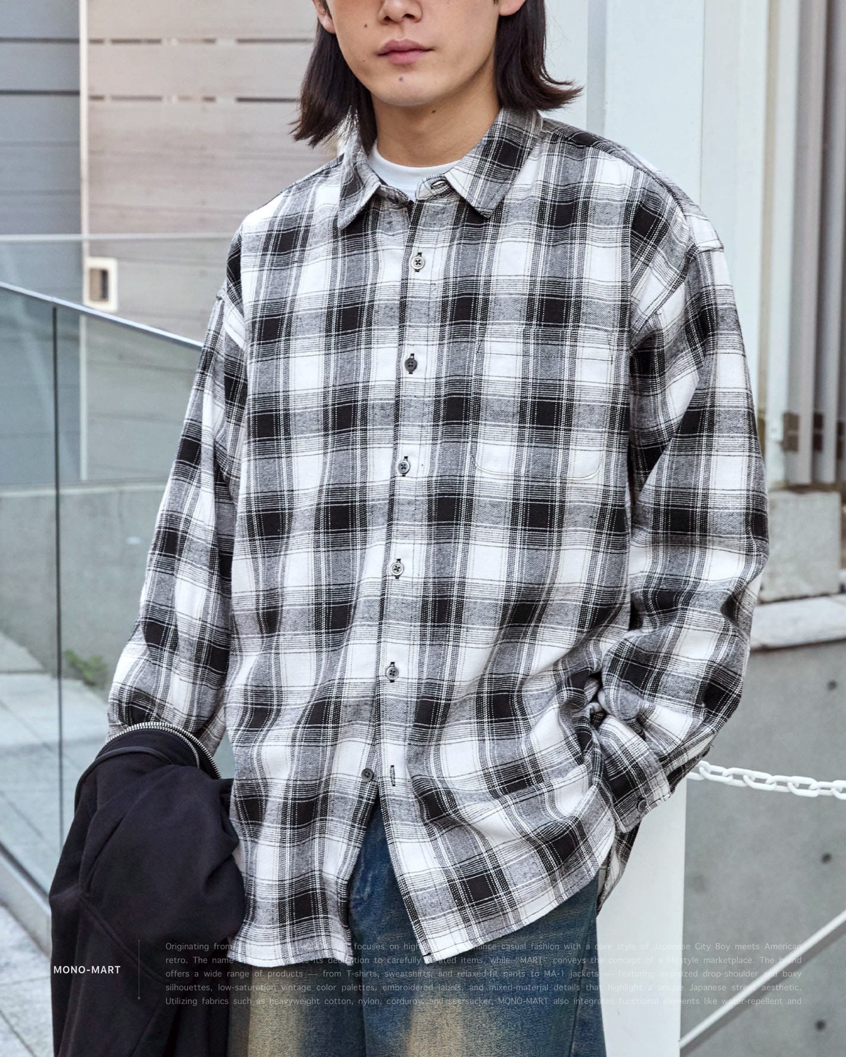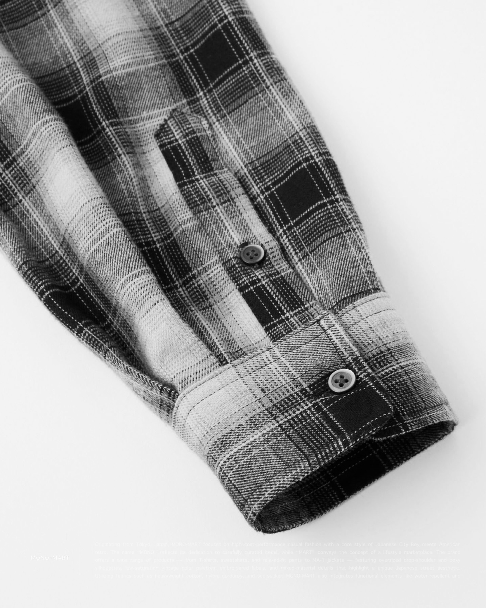 [ MONO-MART . Ombre Check Shirt . Oversized Shirt . 起毛シャツ . 純棉 . 漸層格紋設計 . 寬鬆版型 . 襯衫 . 日系City Boy . 胸前口袋 ]