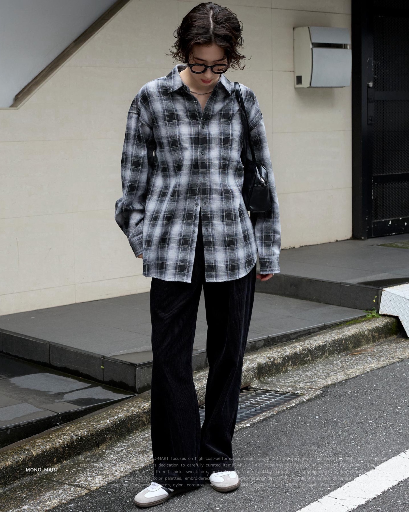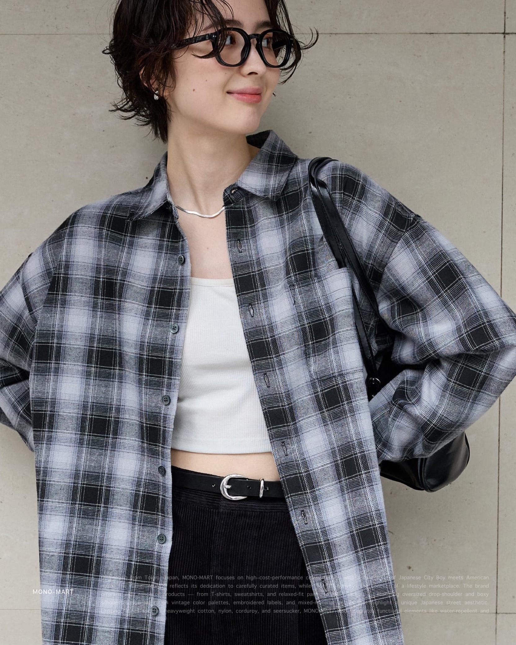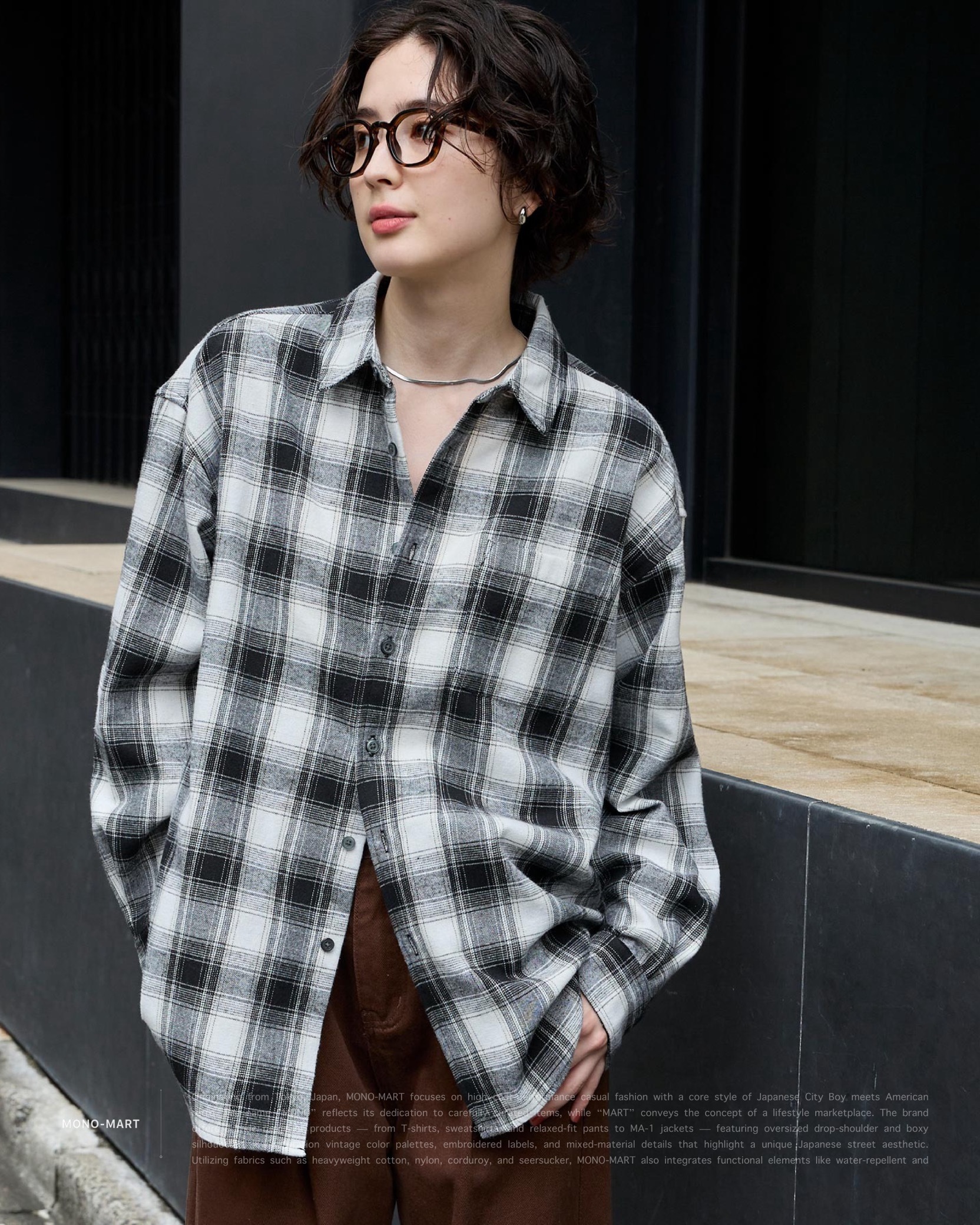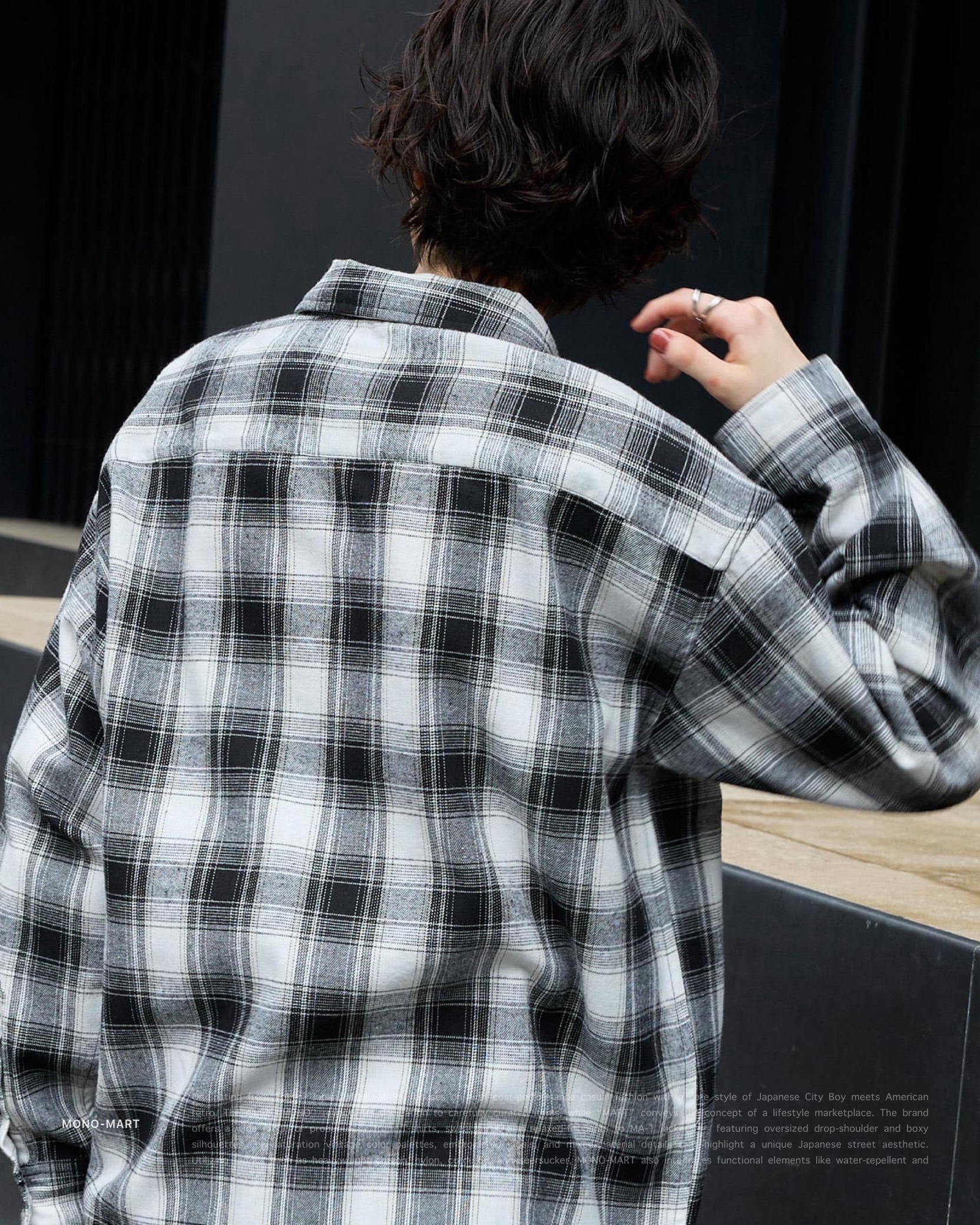 [ MONO-MART . Ombre Check Shirt . Oversized Shirt . 起毛シャツ . 純棉 . 漸層格紋設計 . 寬鬆版型 . 襯衫 . 日系City Boy . 胸前口袋 ]