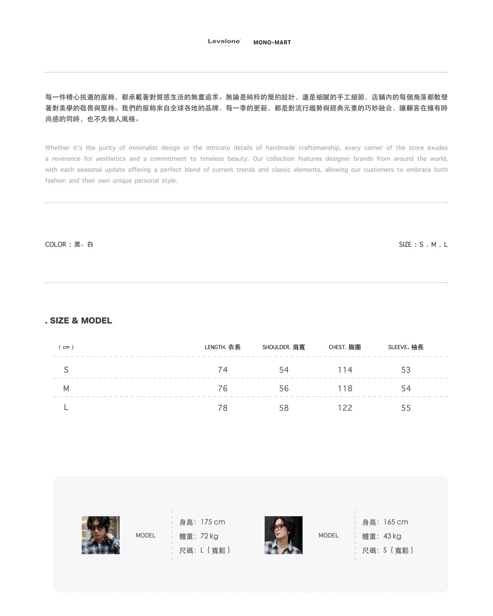COLOR:黑、白