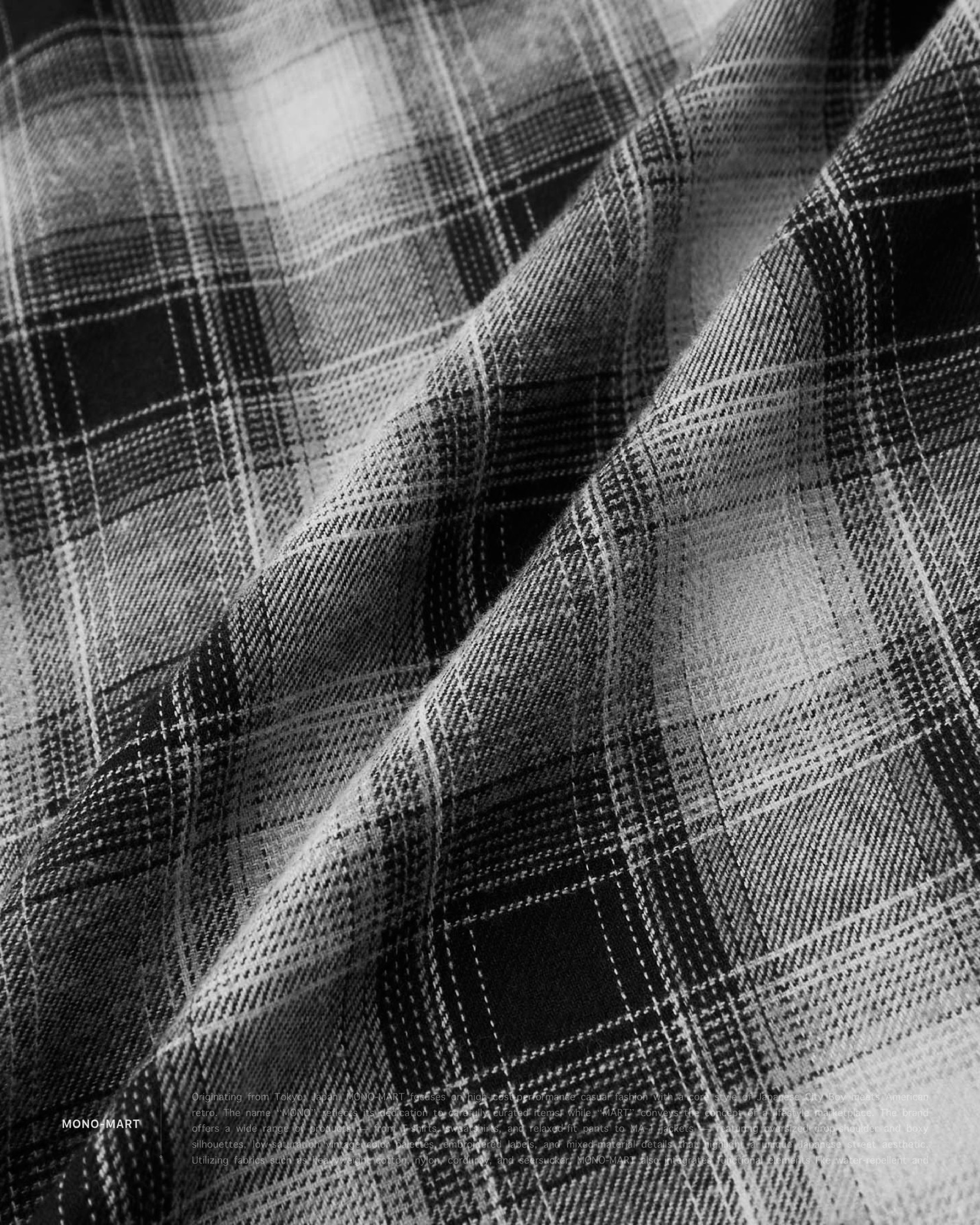 MATERIAL:100% Cotton。採用漸層格紋純棉製成,厚度適中。