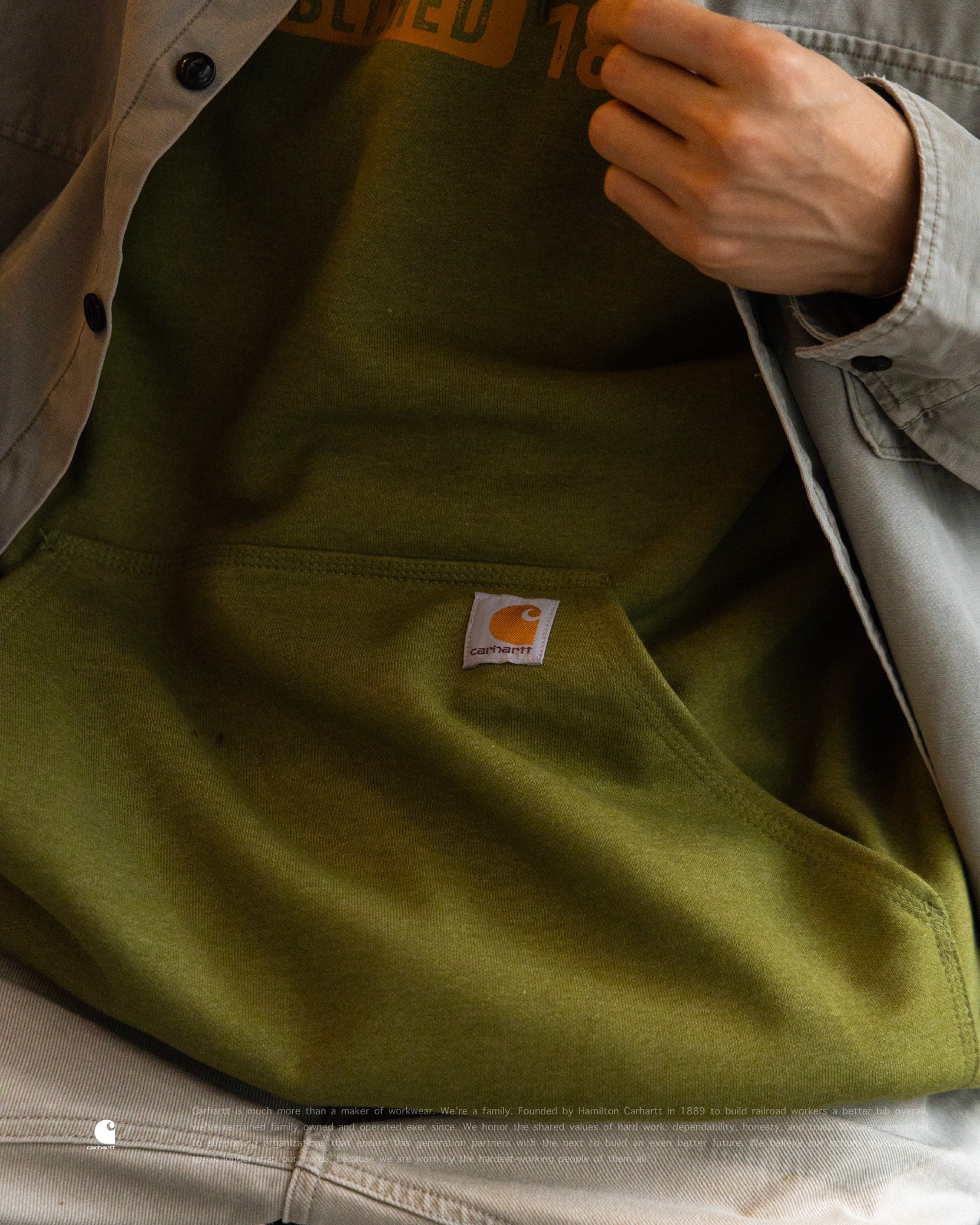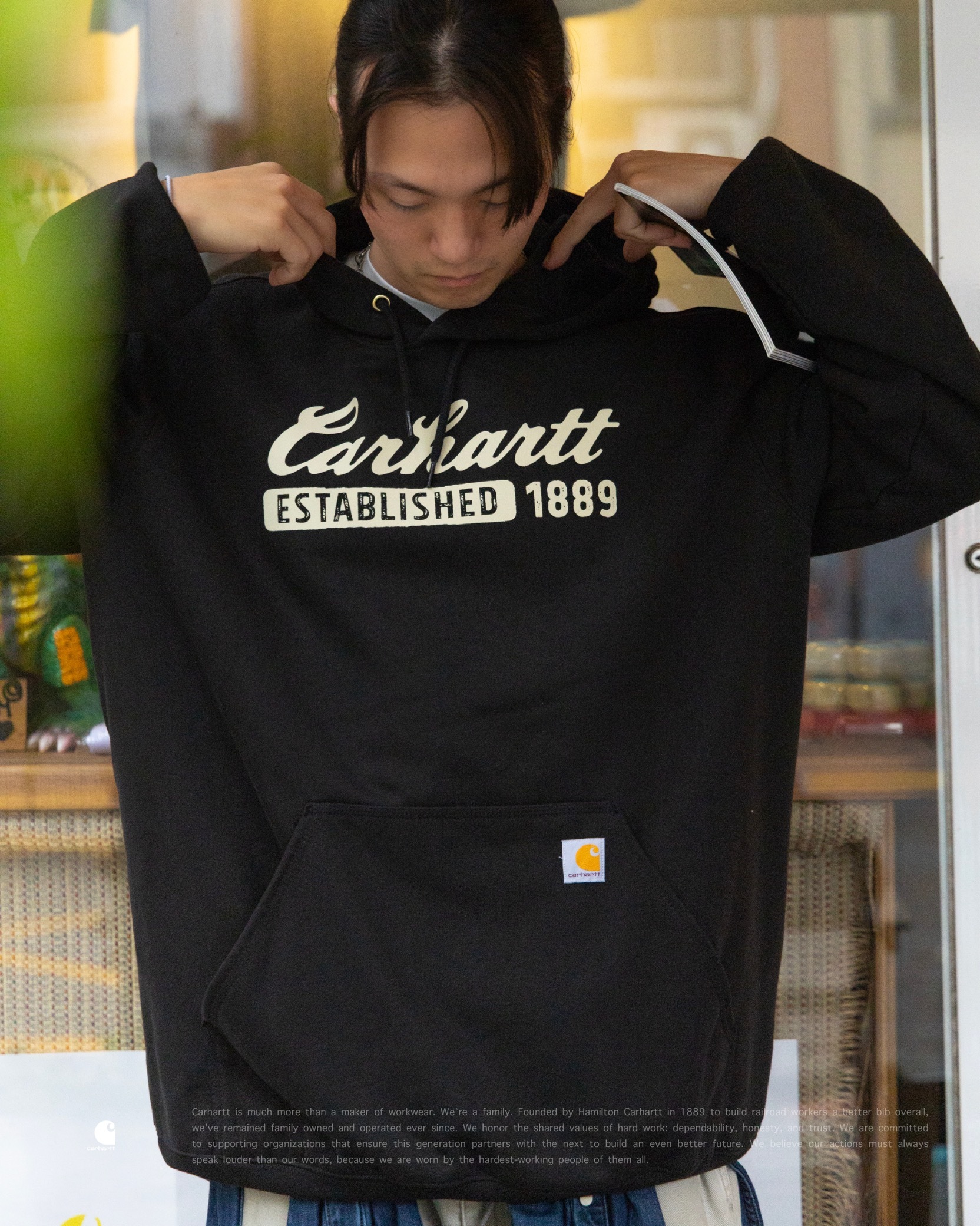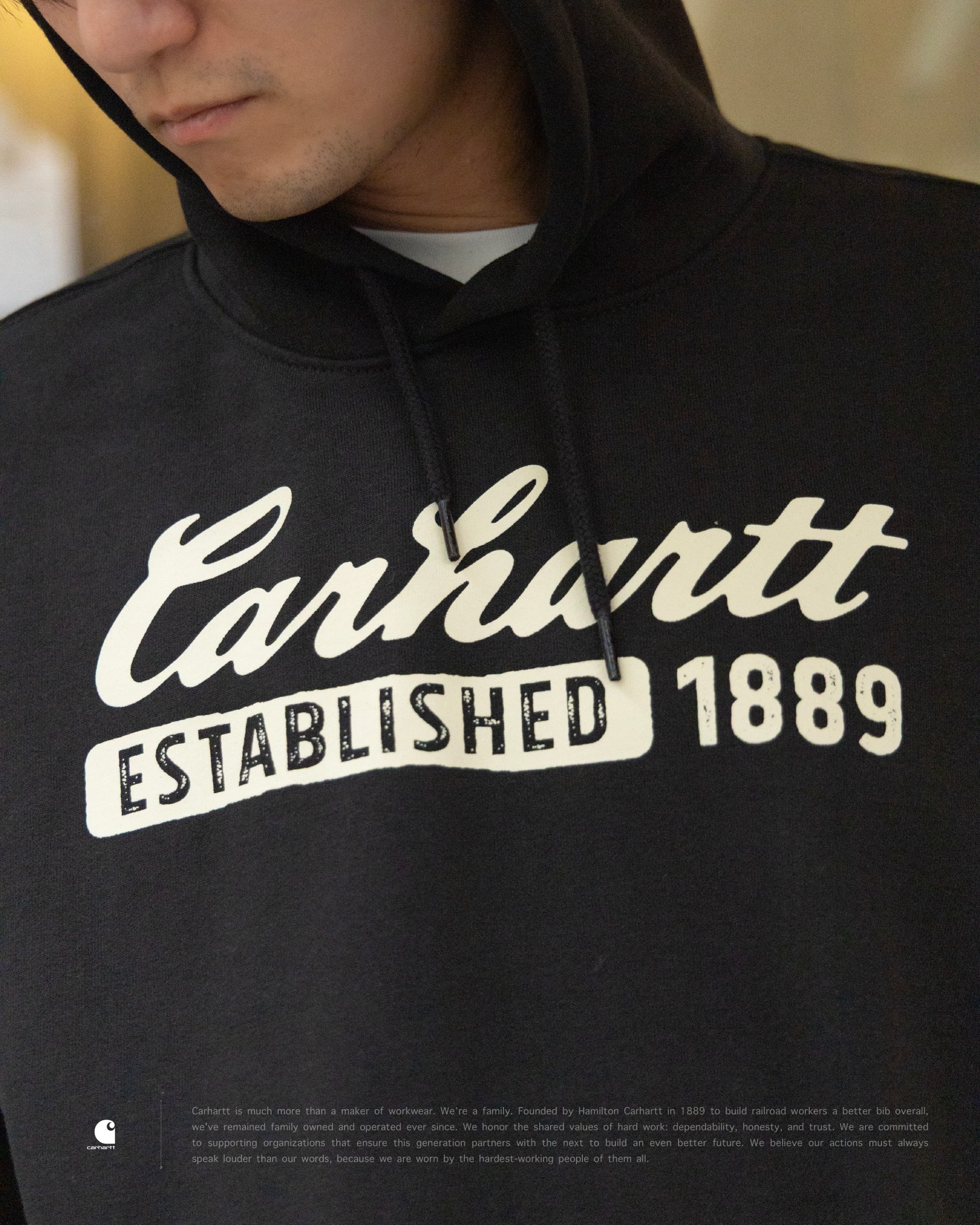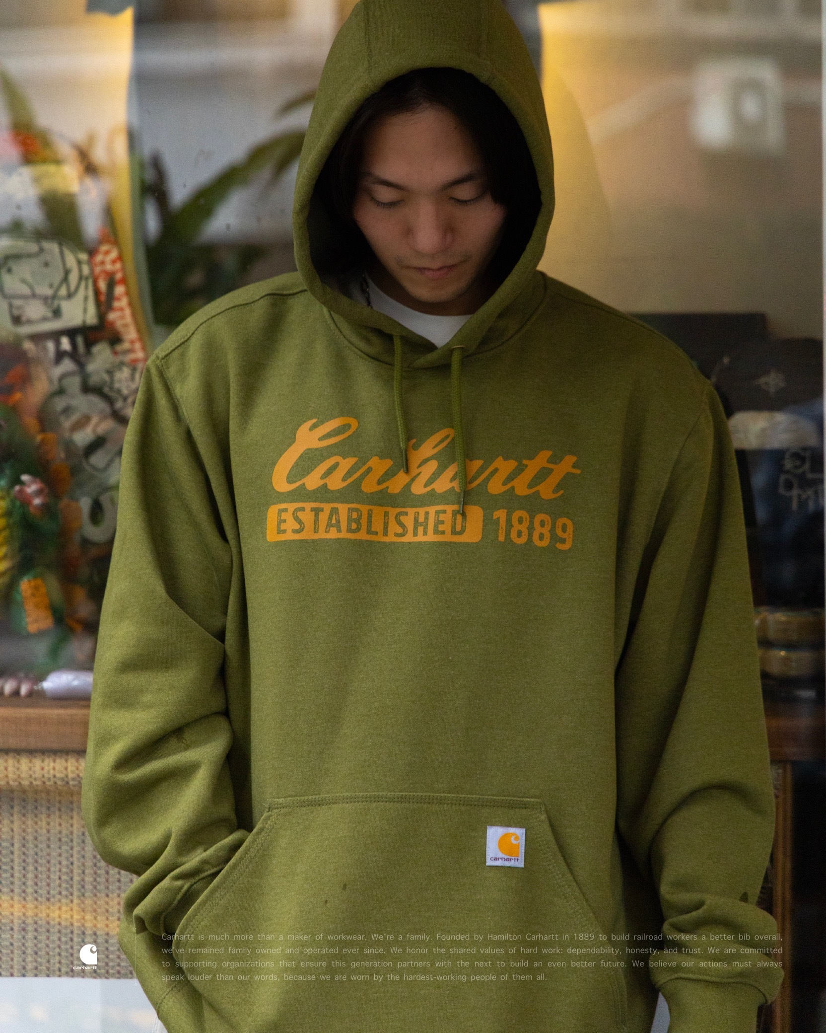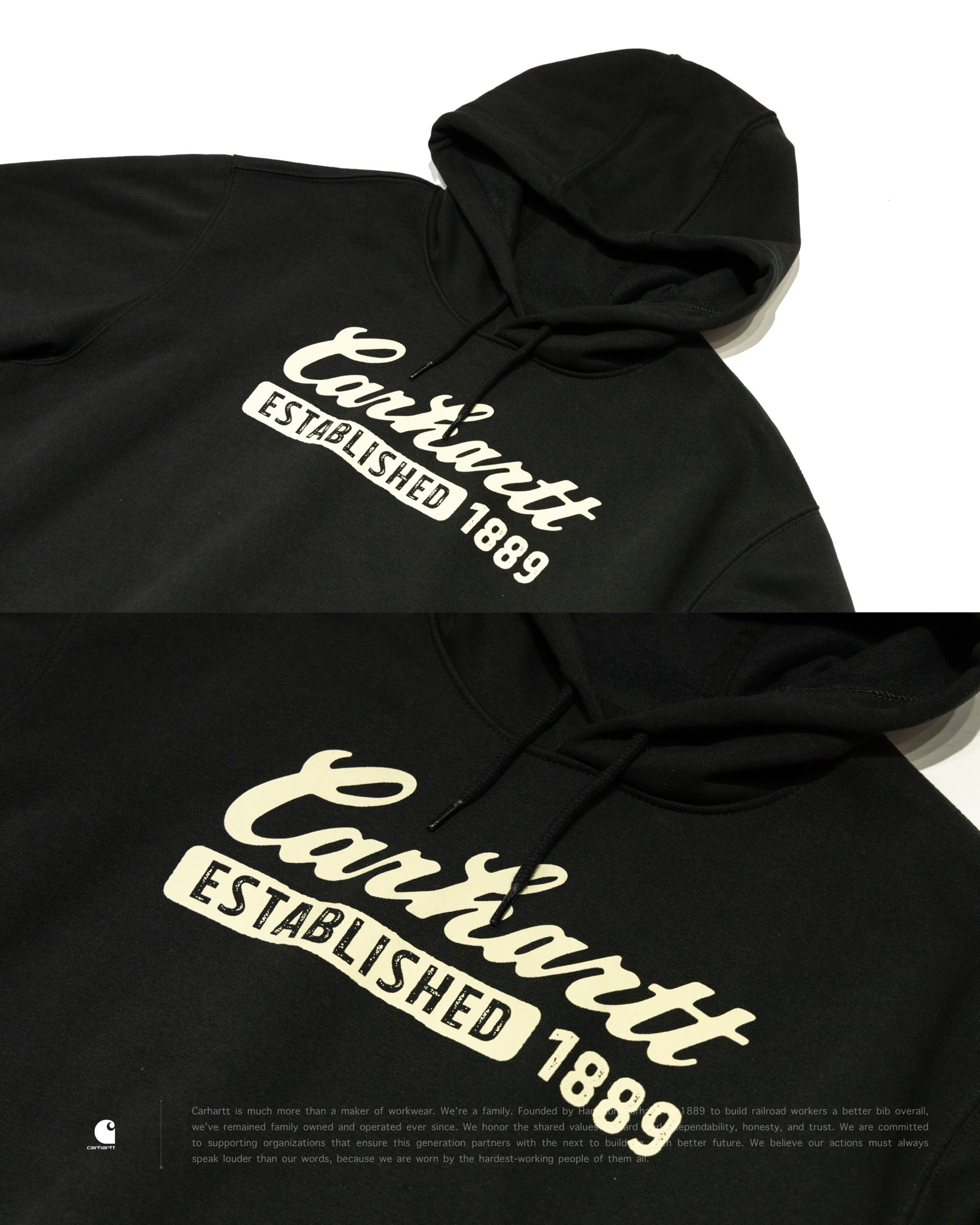 [ Carhartt® . 復古印刷 . Loose Fit . 10.5oz 厚磅刷毛 . Heavyweight Fleece . 保暖 . 連帽抽繩 . 袋鼠口袋 . 彈性袖口 . 羅紋下擺 . 美式復古 . 帽衫 . 帽 TEE ]