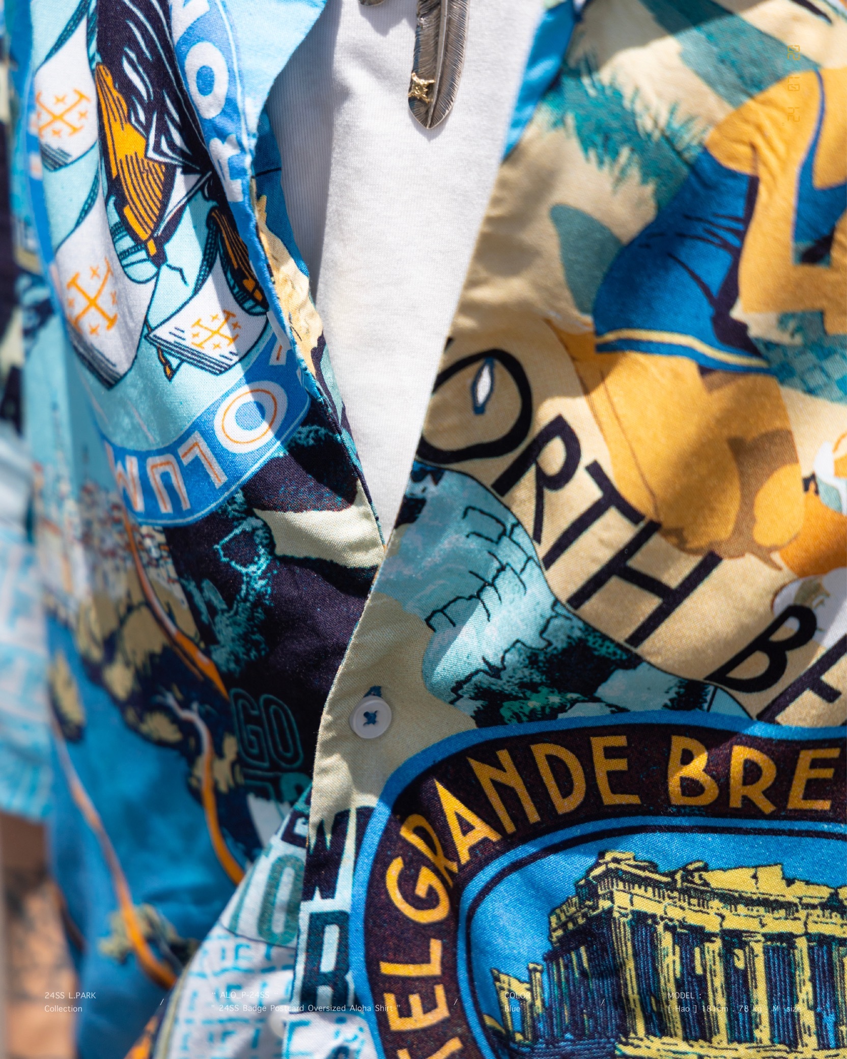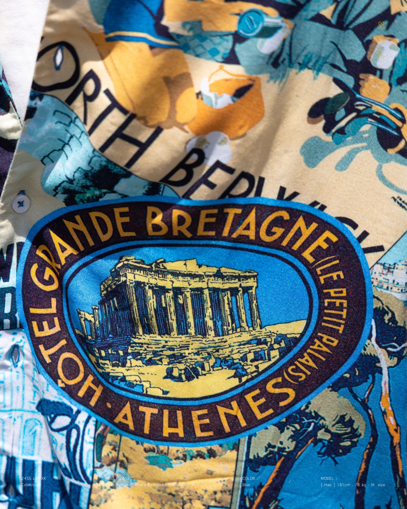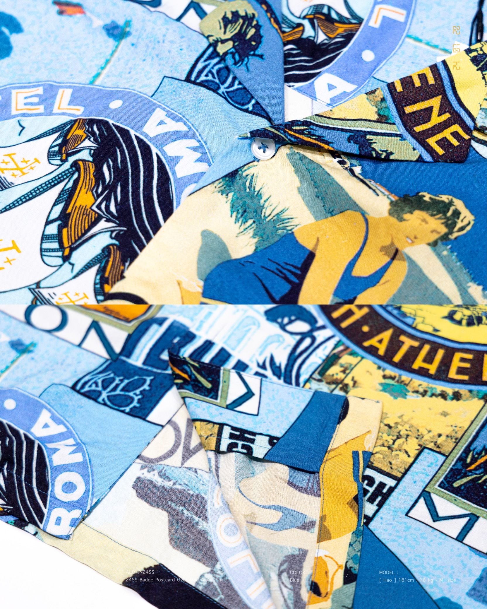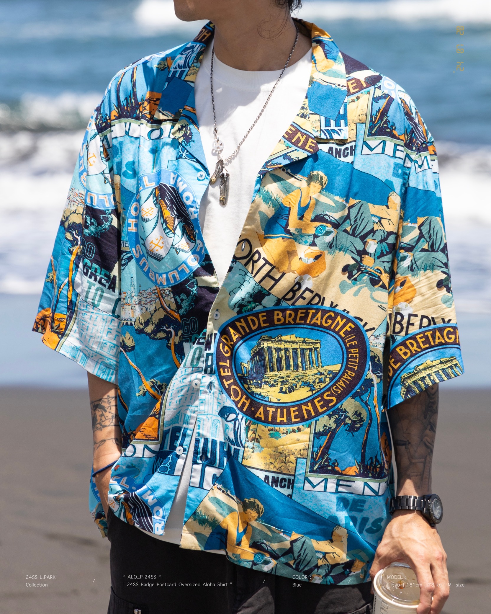[ 100% Cotton . 滑順柔軟 . 親膚透氣 . 夏威夷 . 徽章明信片 . 土耳其製造 . 短袖襯衫 ]
