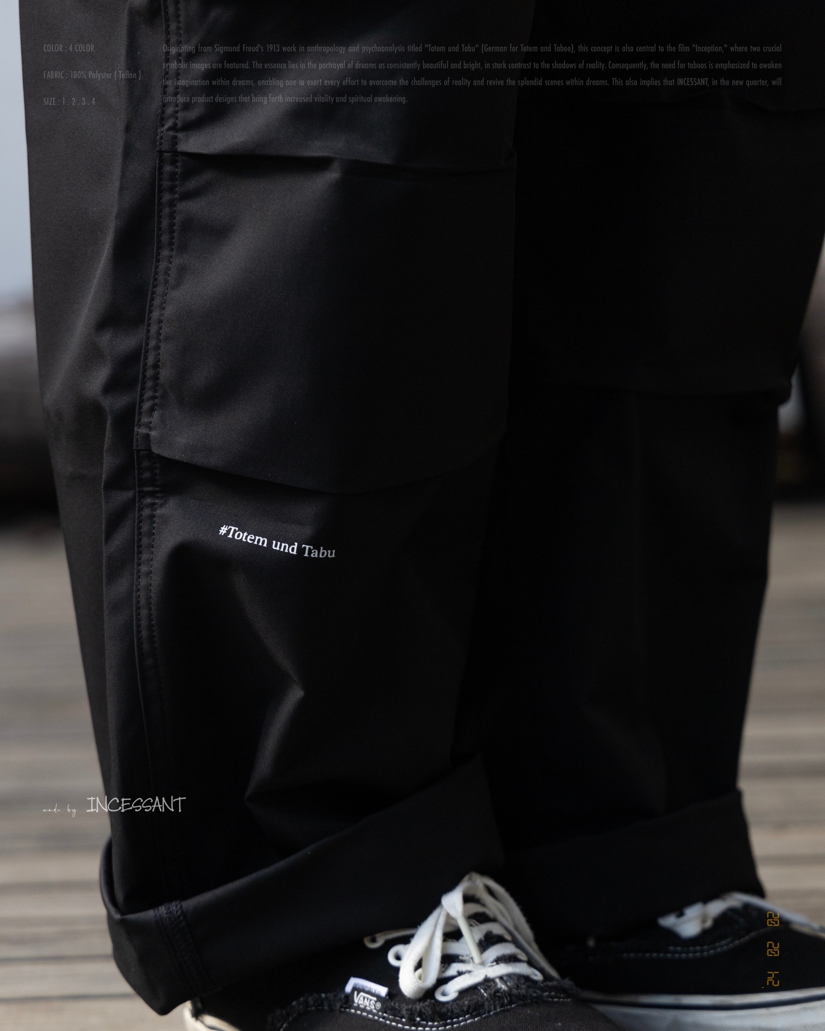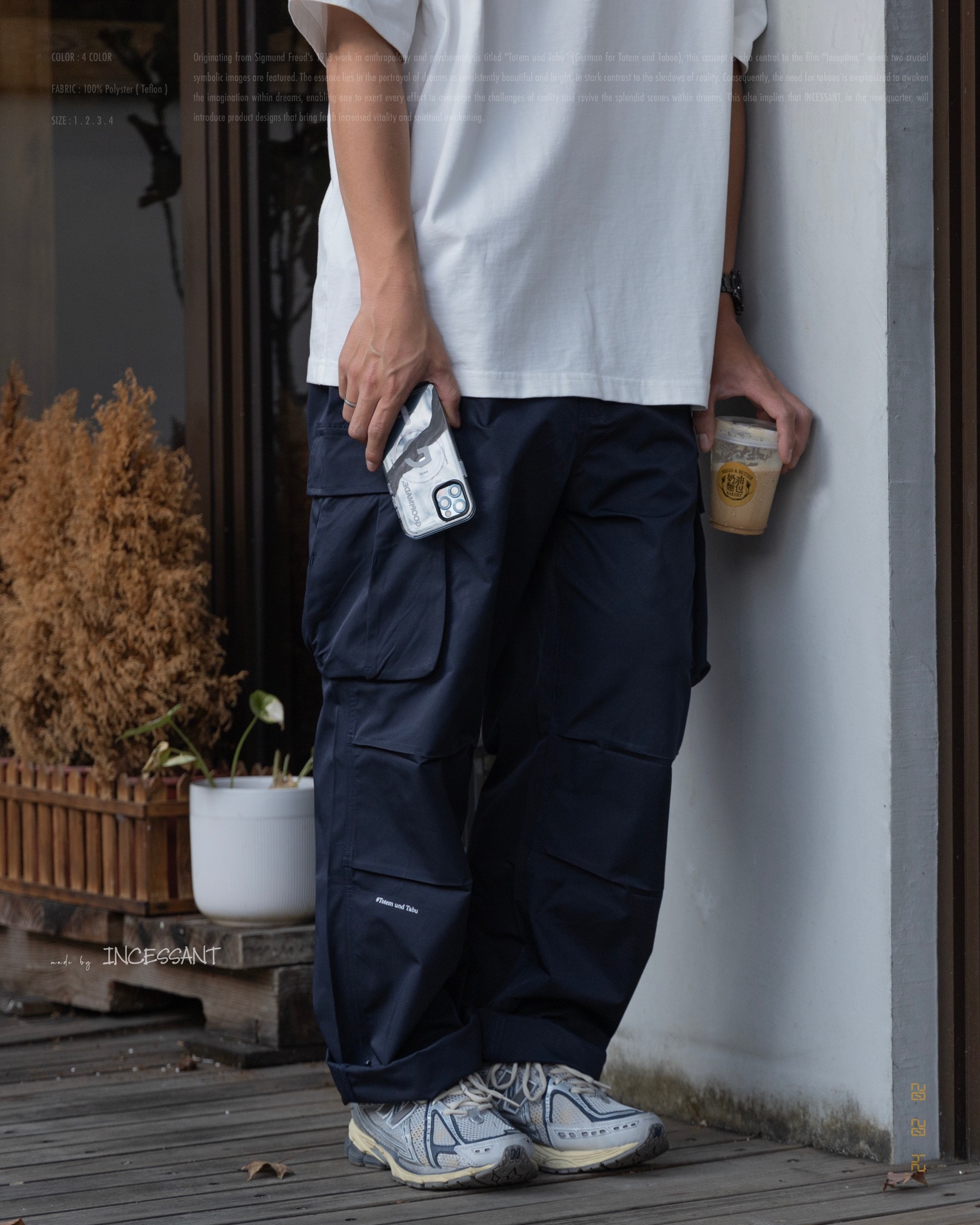 採用M65軍褲版型作為設定,依照布料特性修改版型,以近年流行的日系寬鬆輪廓打造; 膝蓋採用雙打摺設計增加立體感、同時也不失立體效果。