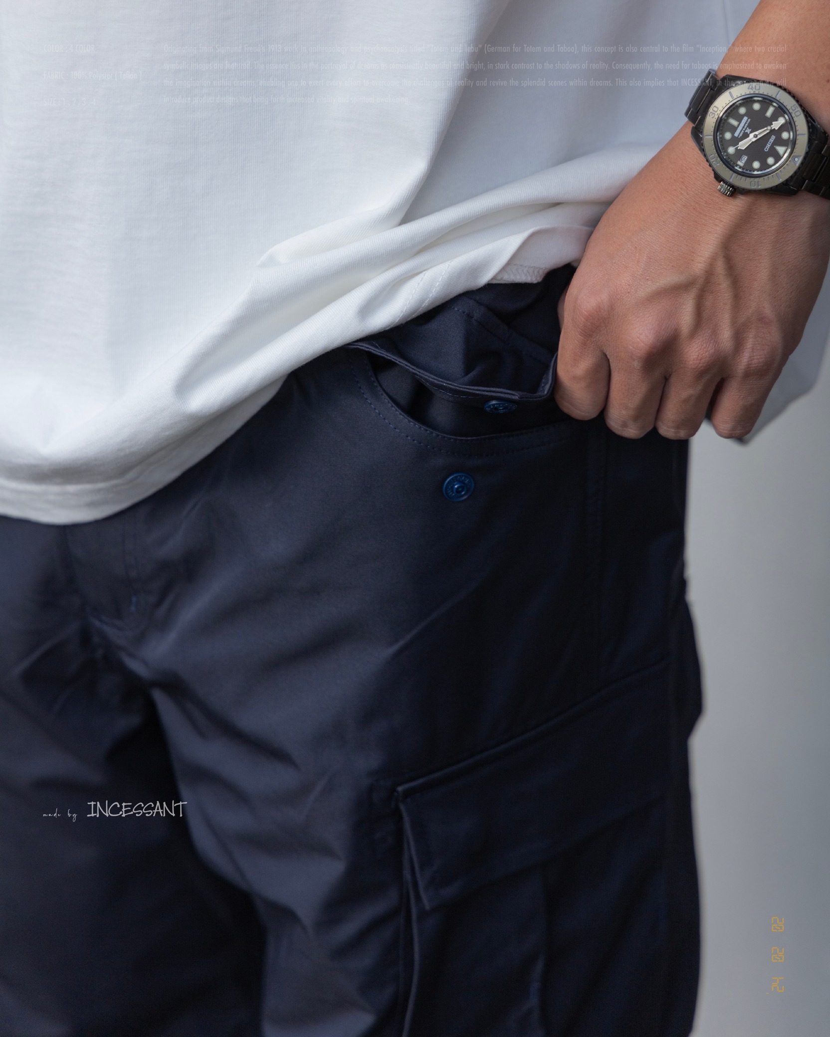第三代 Cargo Pants 以 “ 城市機能 ”為設計主軸,面料採用 “ COOLMAX® “ 纖維科技面料;具有導濕排汗、涼爽透氣、柔軟,能將人體活動時所產生的汗水,迅速排至服飾表層蒸發,保持肌膚清爽;布料帶有挺度、觸感光滑。