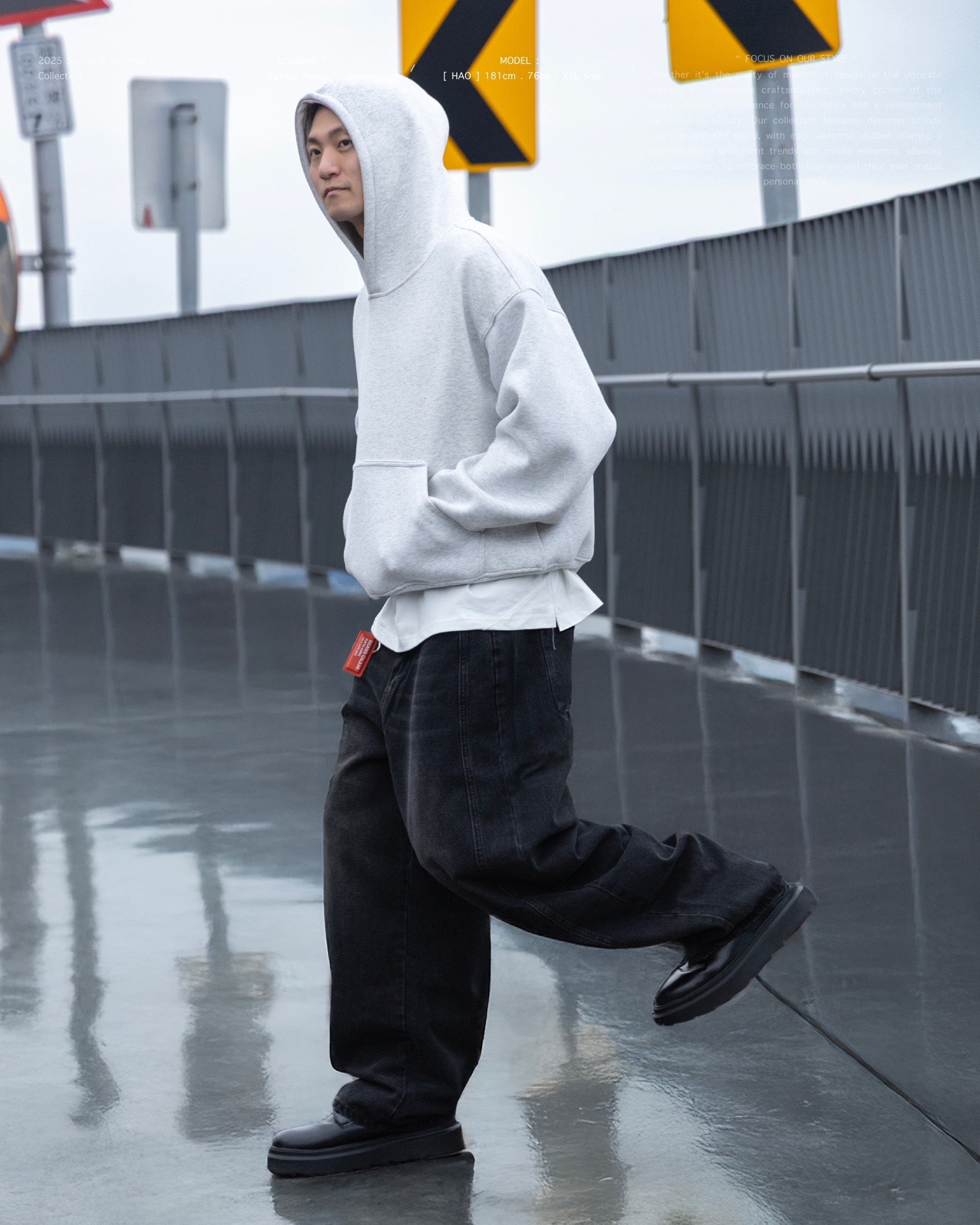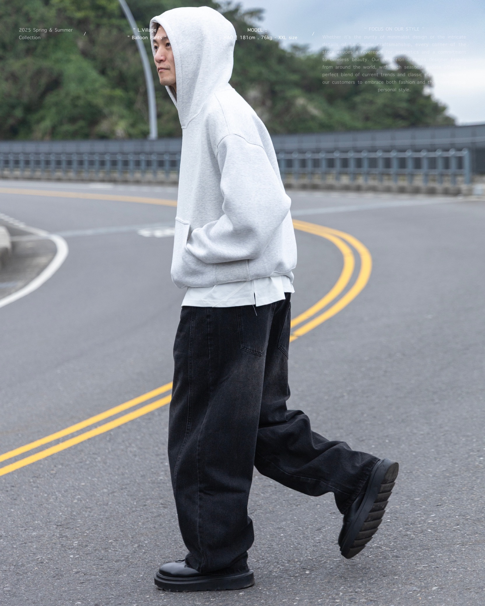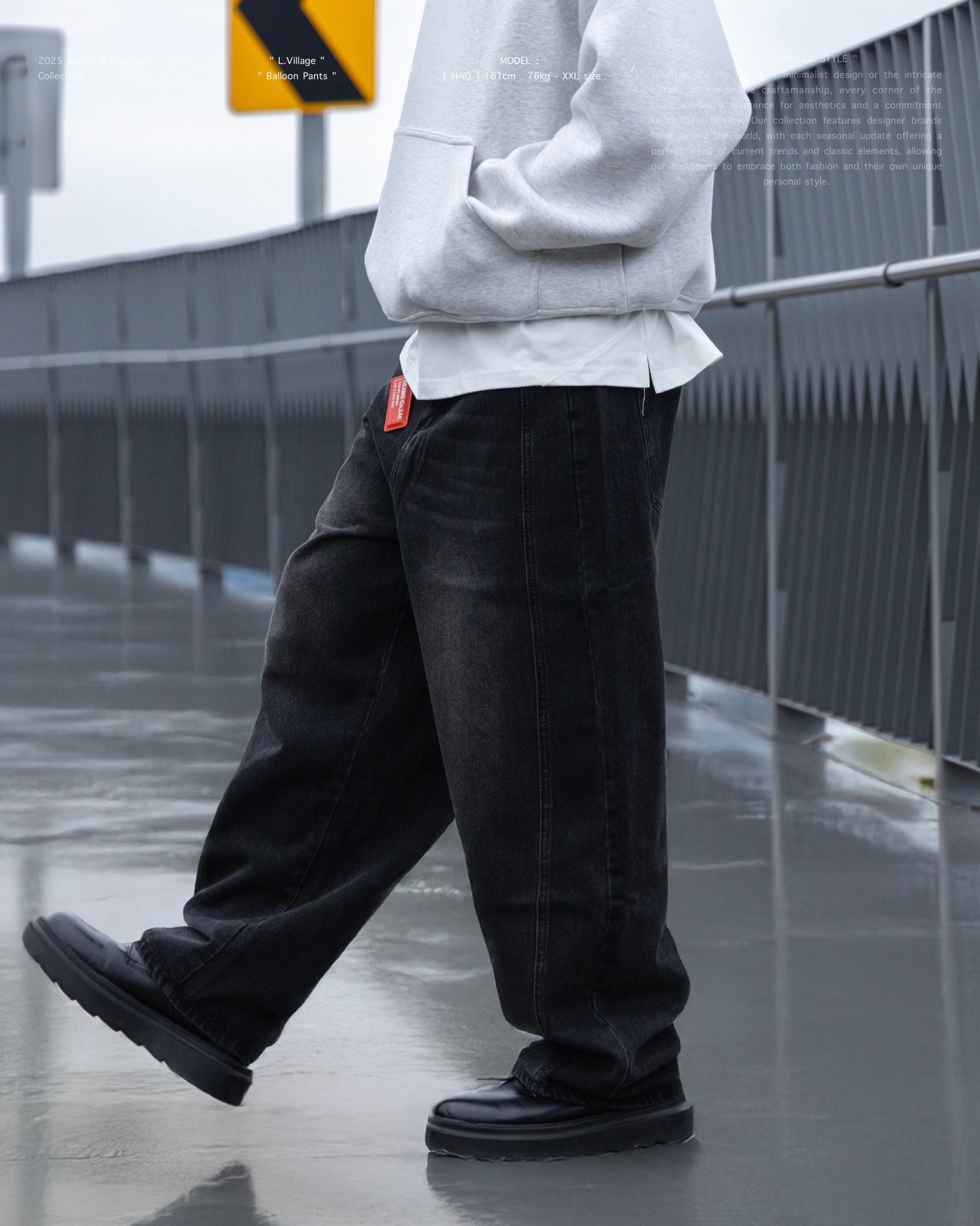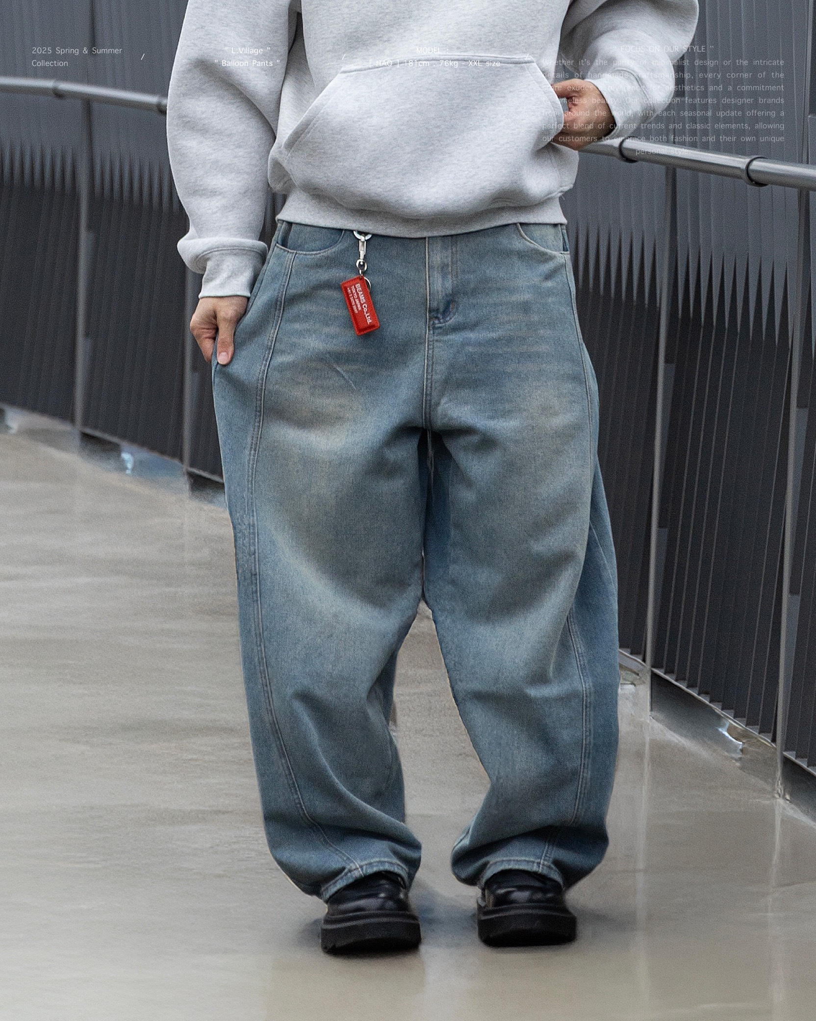 搭配上寬鬆弧形氣球褲版型