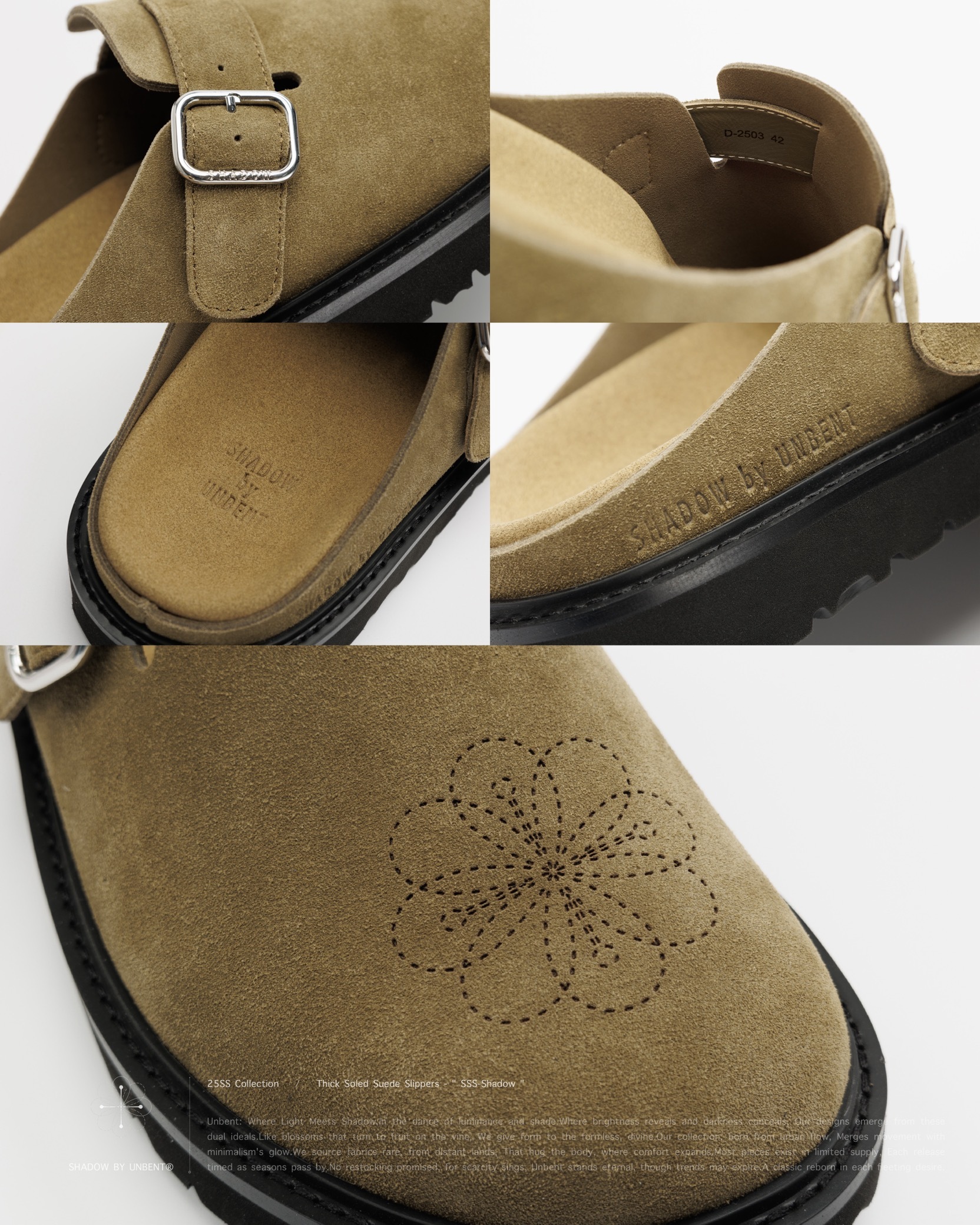 [ 牛皮反毛材質( 反絨牛皮 ) . EVA鞋底、增高厚底設計(3.5CM) . 金屬調配扣 . 鐳射 Logo . 加厚鞋墊 . 加寬鞋楦、全皮包覆設計 . 搭配腳緣加固條 . 麂皮勃肯 . 拖鞋 ]