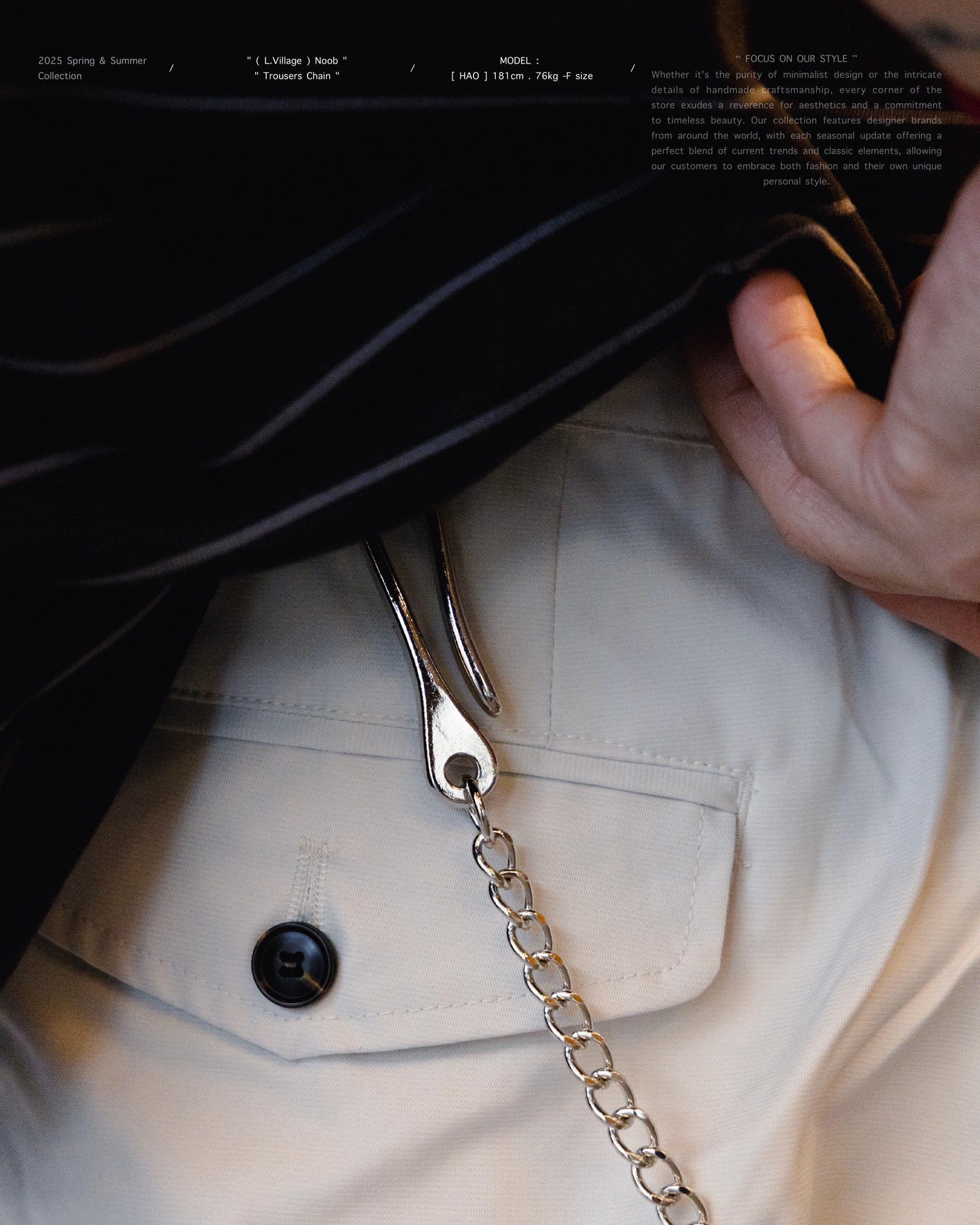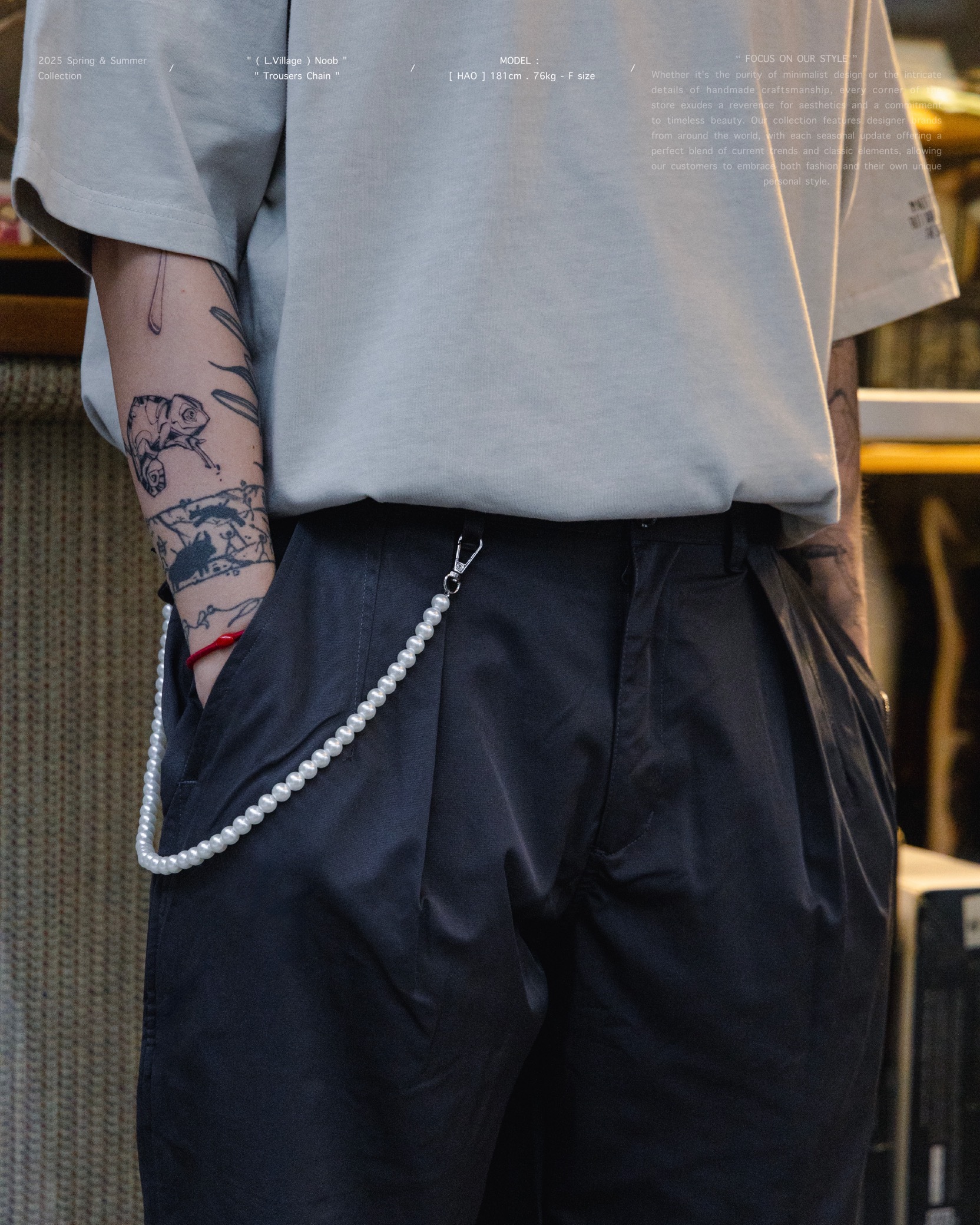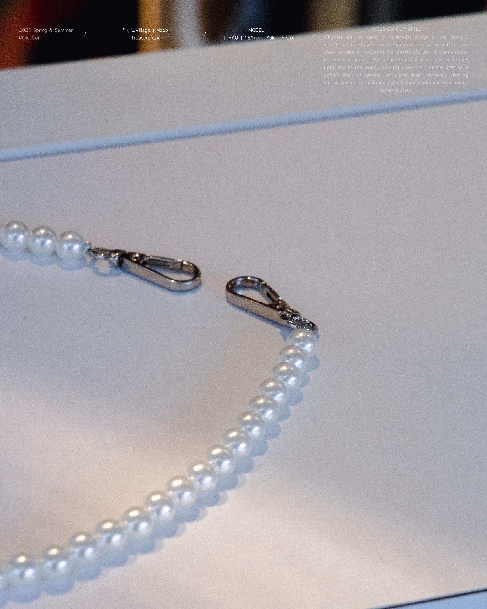 這款珍珠褲鍊以整排光澤溫潤的人造珍珠串聯而成,搭配銀色金屬鉤扣,優雅中帶有街頭感。長度為60公分,無論是垂掛於褲頭、包包側邊或層疊配戴,皆能輕易點綴出與眾不同的細節層次。推薦給偏好柔和風格或想在日常穿搭中加入一點復古氣息的你。
